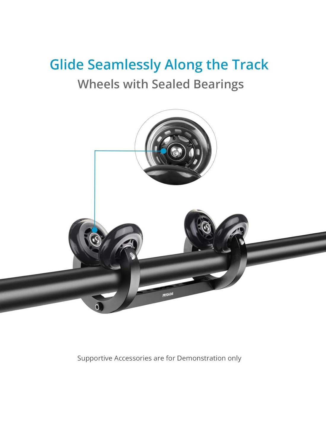 - Movimiento Suave: Las abrazaderas de tubo y las ruedas con rodamientos sellados permiten que el carro se deslice sin esfuerzo a lo largo de la pista para un movimiento fluido y sin fricción