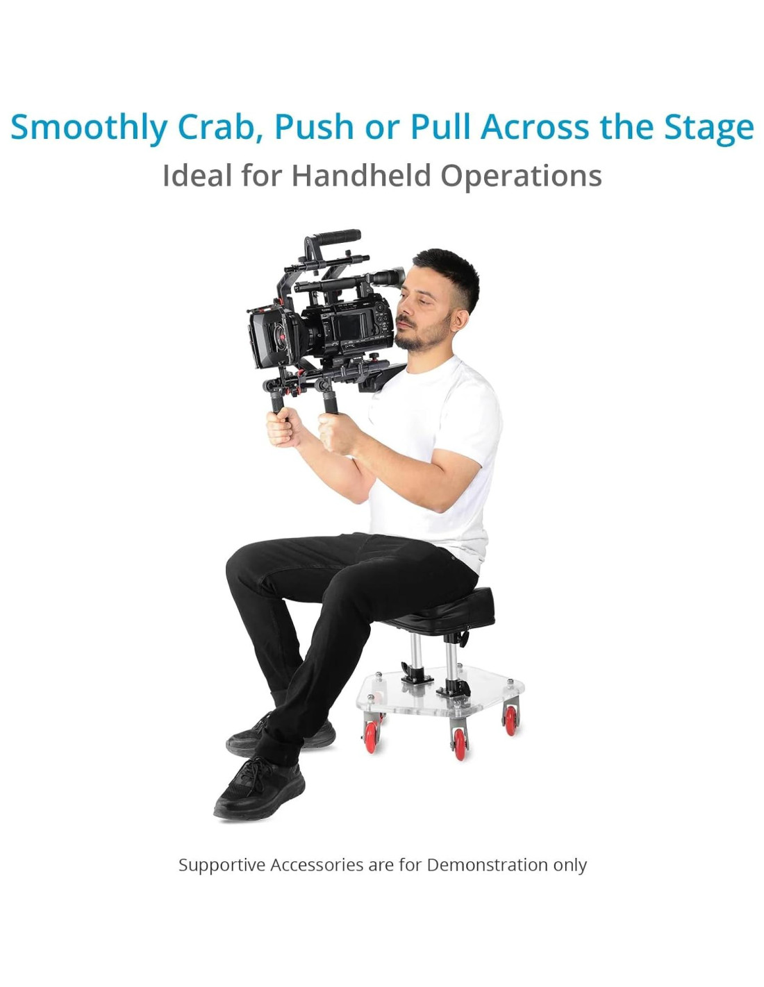 - [Filmación de Mano Sin Esfuerzo] Deslízate fácilmente por escenarios o superficies suaves mientras estás sentado, capturando tomas dinámicas de bajo ángulo con el Dolly Butt de PROAIM para operadores de cámara de mano