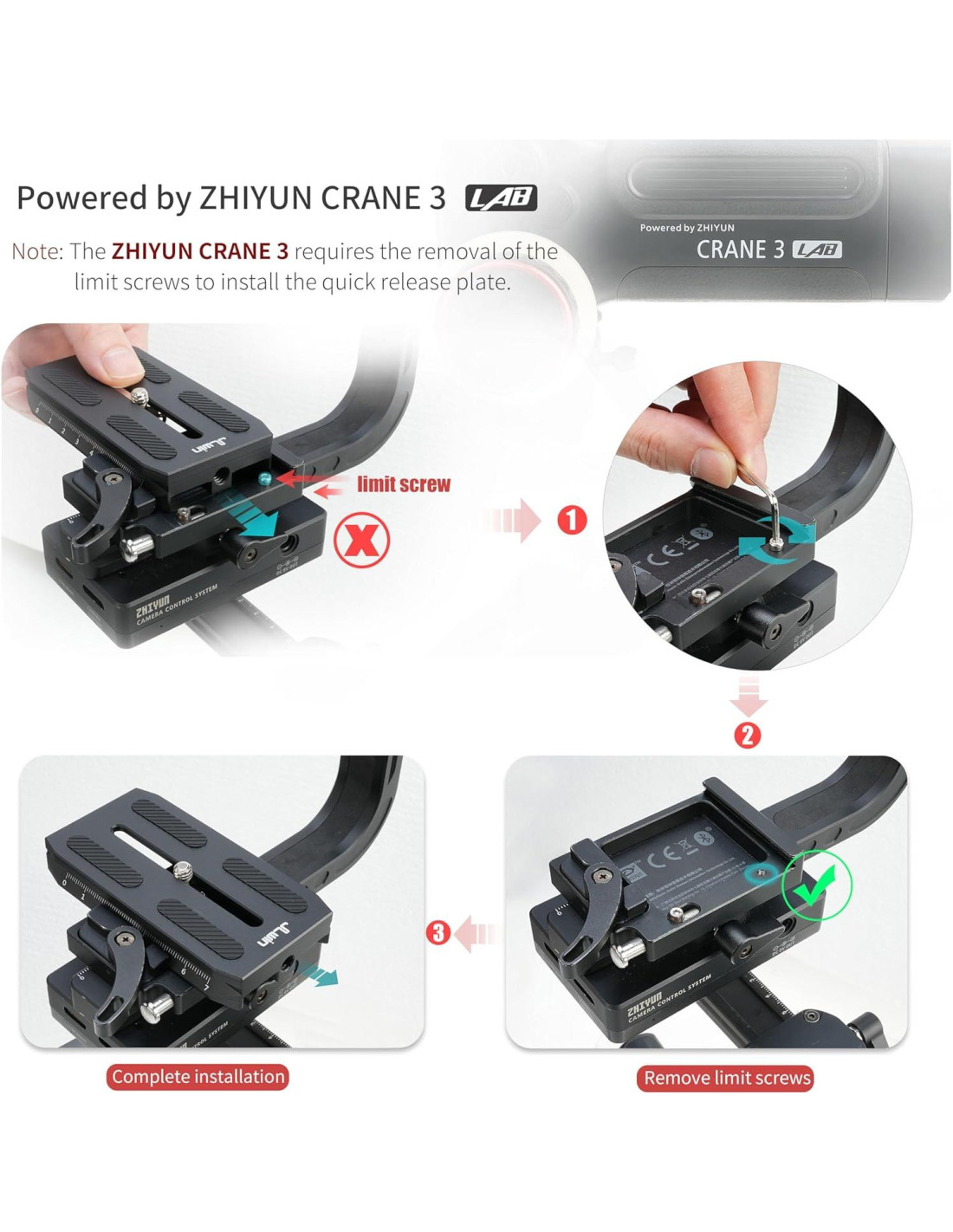 - Para ZHIYUN CRANE 2 3 LAB WEEBILL-S 2 3 Estabilizador de Gimbal. Esta placa de liberación rápida está especialmente diseñada para ZHIYUN CRANE 2, CRANE 3 LAB, WEEBILL-S, WEEBILL 2, WEEBILL 3 Estabilizador de Gimbal para acoplar videocámaras o cámaras, proporcionando una forma más fácil y segura de equilibrar un conjunto de cámara más grande.