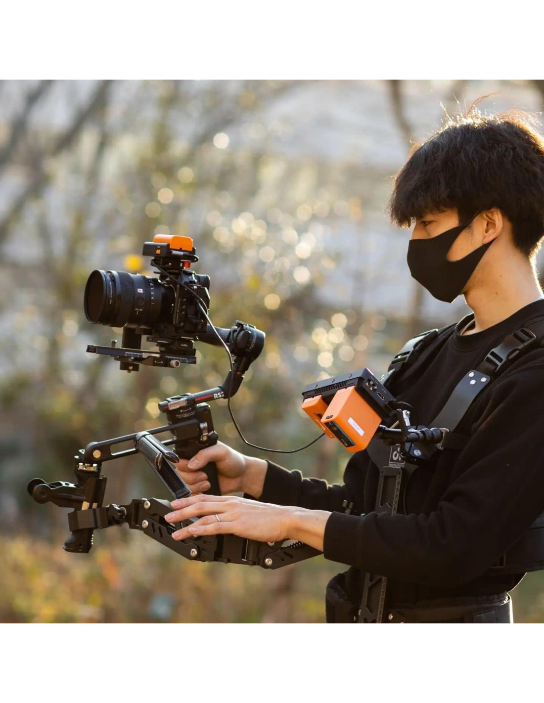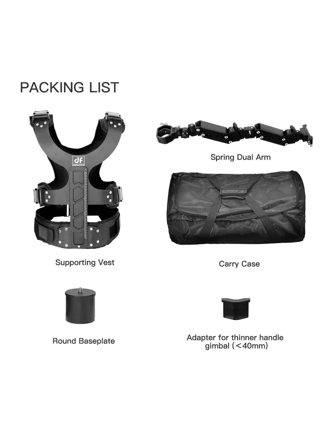 - Fácil de Transportar: Este chaleco gimbal se puede desmontar en 2 partes y empacar en una bolsa negra, es fácil para ti llevarlo en grabaciones al aire libre.