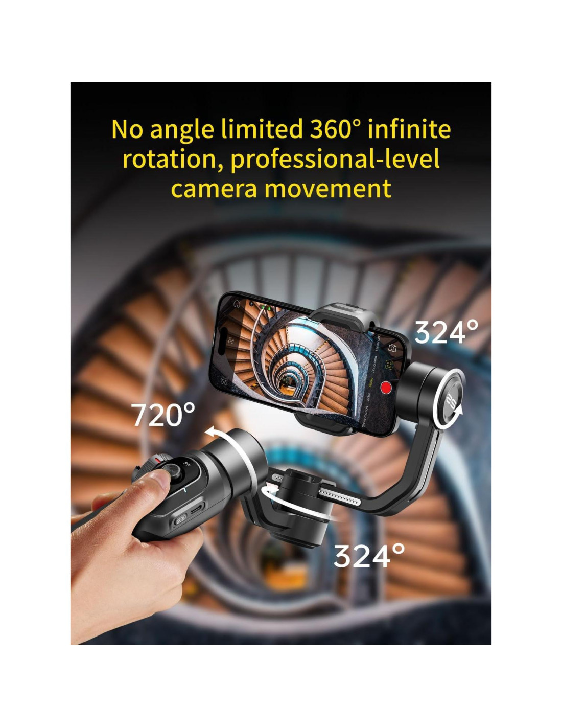 - Capacidad Panorámica de 360 Grados: Nuestro gimbal profesional de 3 ejes estándar de la industria ofrece rotación sin costuras, experimenta la libertad definitiva de capturar impresionantes tomas panorámicas con la capacidad de 360 grados de nuestro gimbal. Rote tu gimbal sin esfuerzo para capturar vistas impresionantes y crear contenido visual inmersivo. Desata tu creatividad y captura la imagen completa. Mango del gimbal con varilla de extensión incorporada, hasta 19 cm, ofreciendo un alcance extendido para capturar ángulos únicos y tomas expansivas