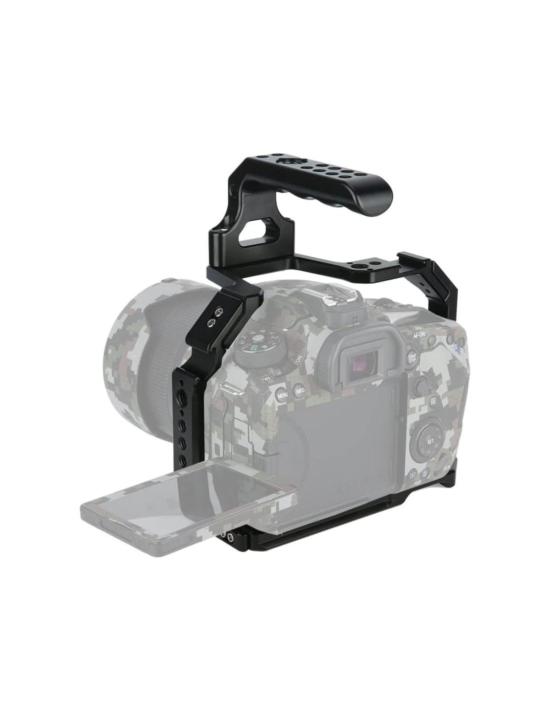 Kit de Jaula con un Mango Superior de Bajo Perfil Compatibilidad: Se adapta a Canon EOS 90D Se adapta a Canon EOS 80D Se adapta a Canon EOS 70D Lo que obtienes: 1 x Jaula 1 x Mango superior Peso del producto: 0.32 kg Proceso: arenado + anodizado negro, CNC Material: Aleación de aluminio