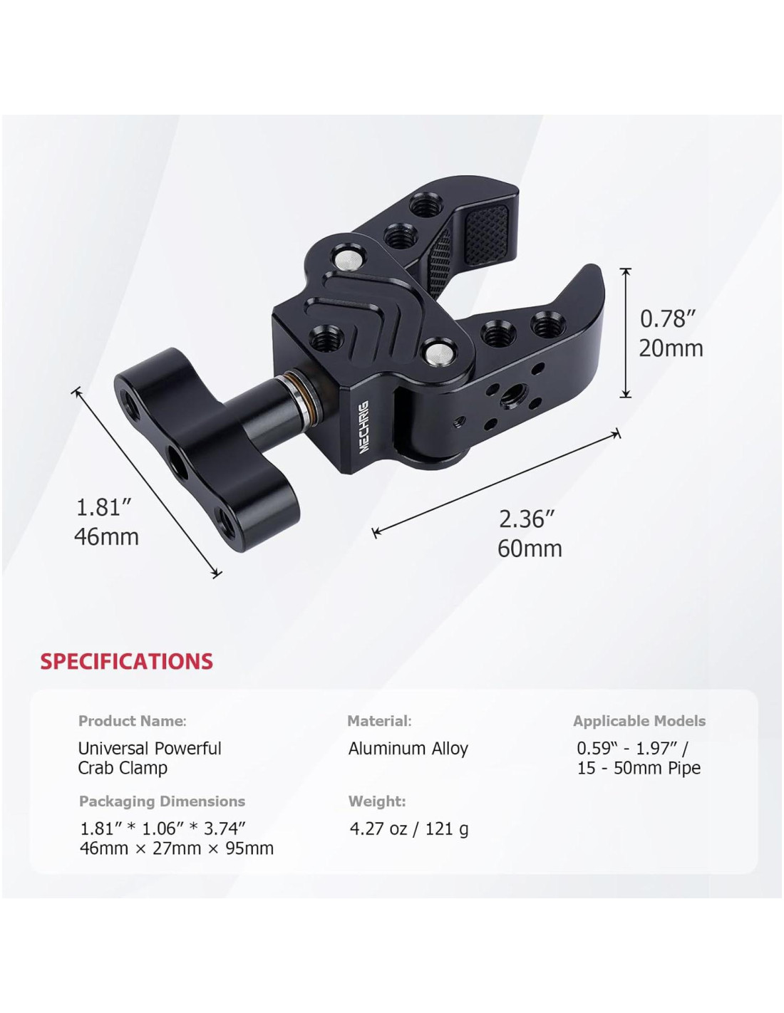 - 4. Bloqueo de Llave Sin Herramientas: Palanca integrada estilo llave aplica presión uniforme a través de las mandíbulas con operación de una sola mano, asegurando GoPros o teleprompters en menos de 3 segundos