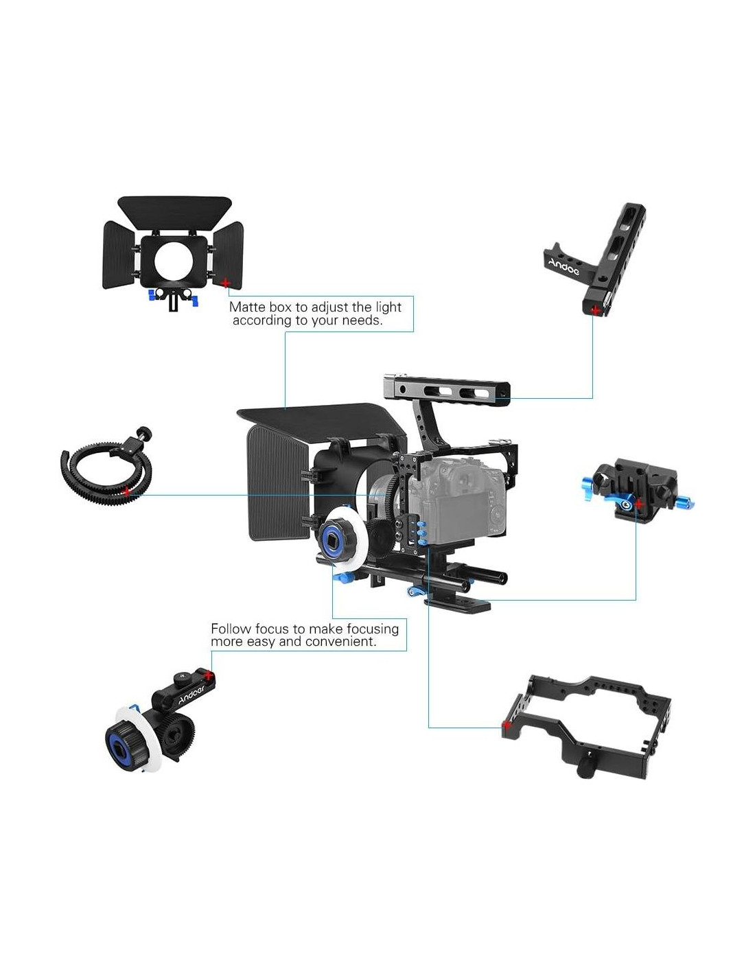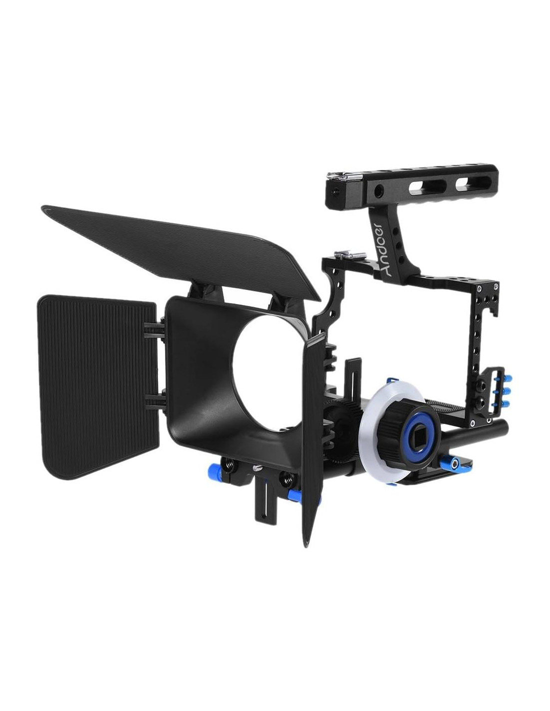 - Kit de jaula para cámara que incluye jaula para cámara, enfoque seguido y caja de matte.