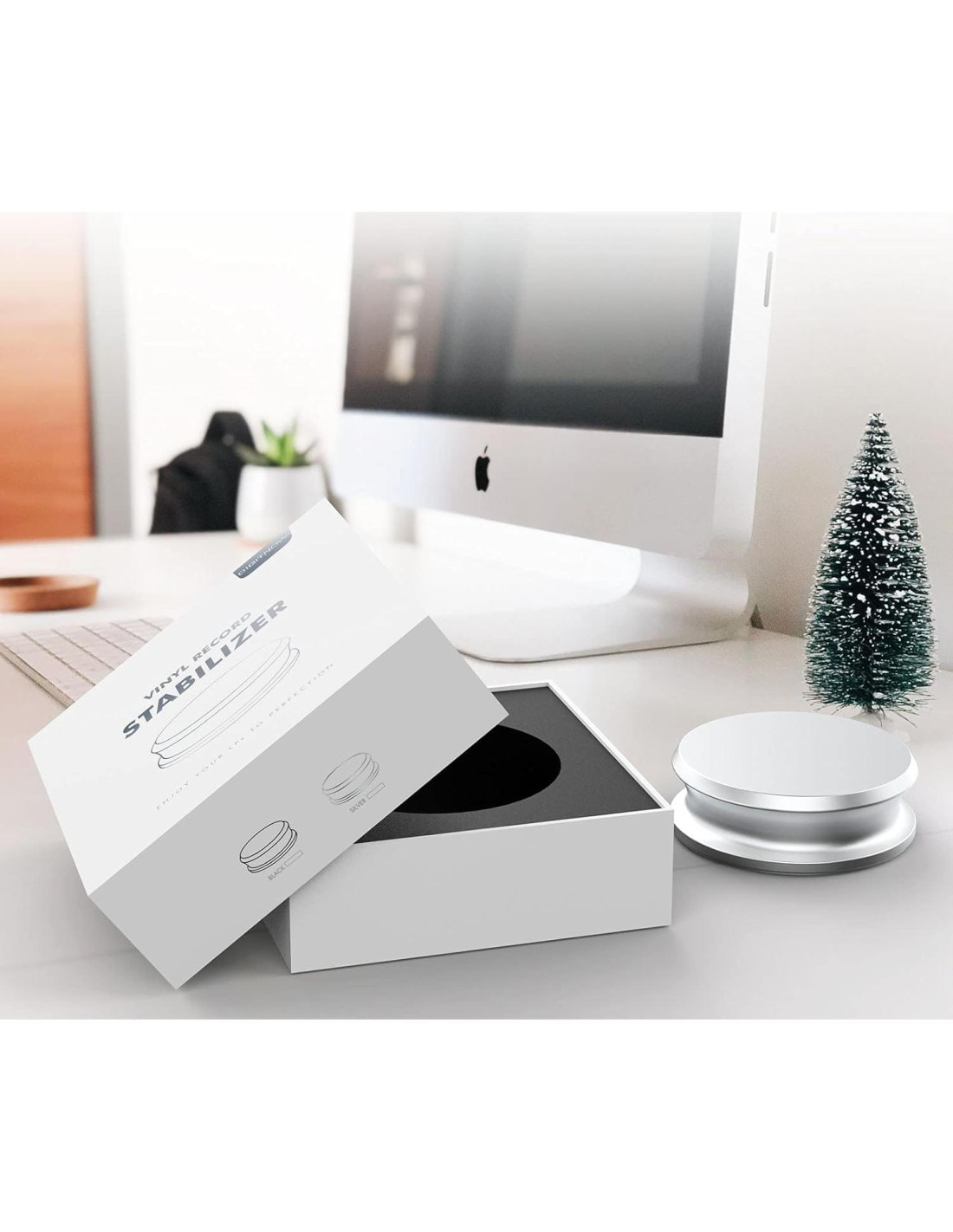 Nuestro estabilizador de vinilo ayuda a mantener el disco firmemente en el centro, evitando que se mueva y se tambalee, y mejorando la calidad del sonido de tu vinilo. Después de probarlo, todo suena más profundo y colorido. Los graves son más presentes y claros. Los medios suenan más claros y completos. Los agudos mejoran en tono, con la misma claridad adicional. Nuestro estabilizador de LP es bastante liviano - 250g (8.8oz) de peso y 2.41cm (0.95in) de altura, se ajusta debajo de la tapa de tu tocadiscos. Así que puedes cerrar la tapa mientras está en uso. Tiene una capa de terciopelo en la parte inferior para que las etiquetas de los discos no se rayen ni se arruinen. Ayuda a mejorar la calidad del sonido en tus discos no planos. Puedes disfrutar de tu vinilo sin la ansiedad de dañar tu colección. El estabilizador de peso para discos DIGITNOW es un accesorio imprescindible para tocadiscos hecho para audiófilos, usuarios de DJ y fanáticos del vinilo. Existimos con el único propósito de elevar tu experiencia de escucha. Todo amante de la música sabe que un reproductor de discos de vinilo puede proporcionar un mejor sonido y ofrece una experiencia mejorada. El estabilizador de peso para discos puede proporcionar simultáneamente una capa adicional de rendimiento a tu tocadiscos favorito.