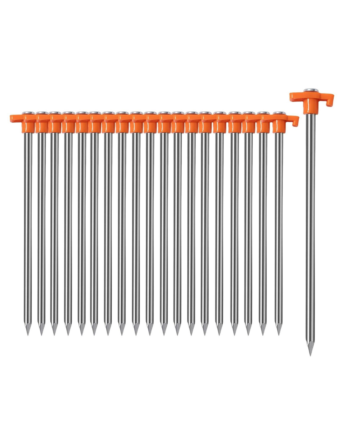 - Fácil de Clavar: La parte superior en forma de T y la punta redonda fresada hacen que la estaca de tienda sea fácil de girar y alinear con la correa de la tienda.