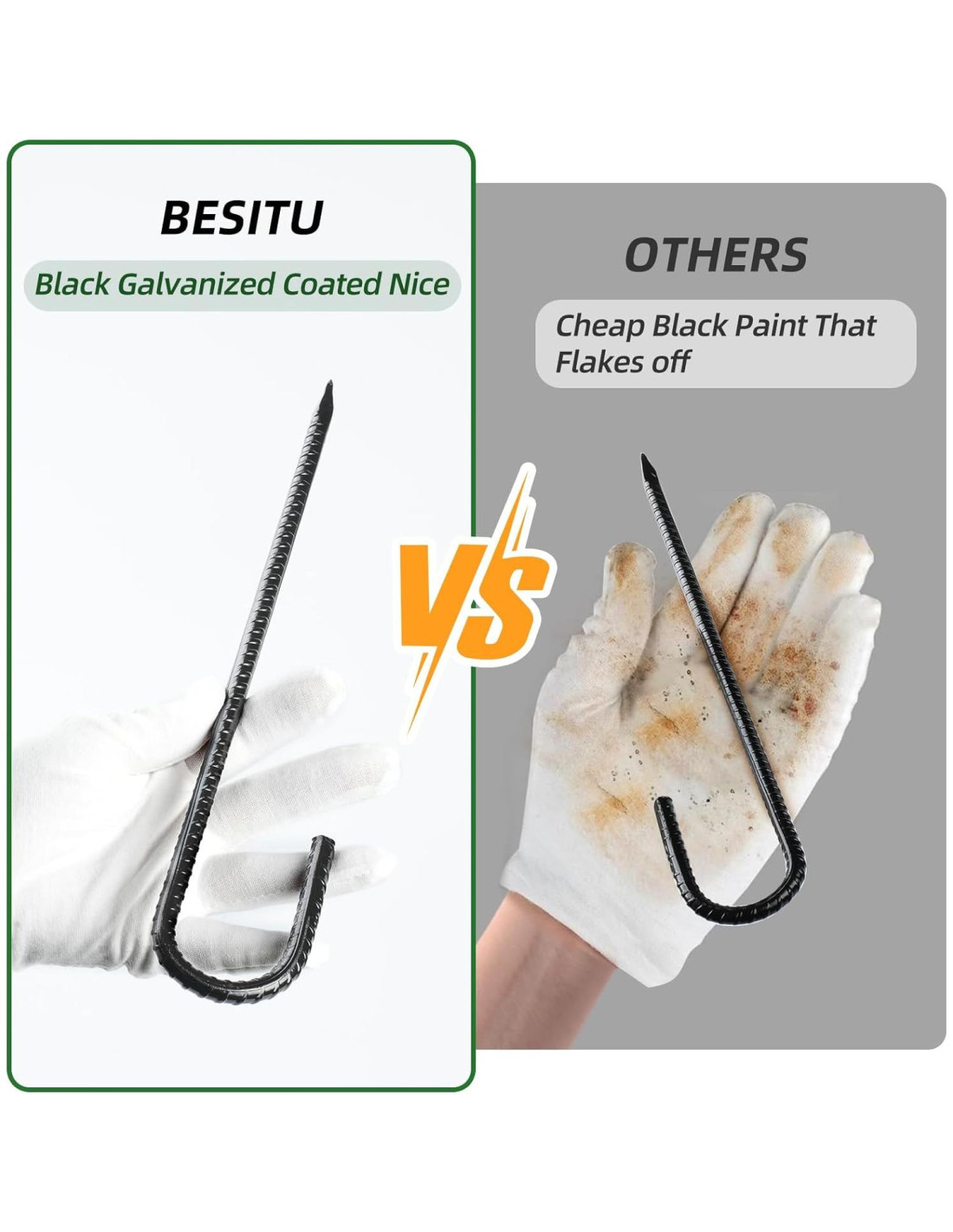 - [GARANTÍA DE DOS AÑOS] Paquete de 16 estacas de rebar con gancho j. ¡Ordena las estacas de metal Besitu hoy, te encantarán! Si no, no dudes en contactarnos, te proporcionaremos la mejor solución en un plazo de 12 horas.
