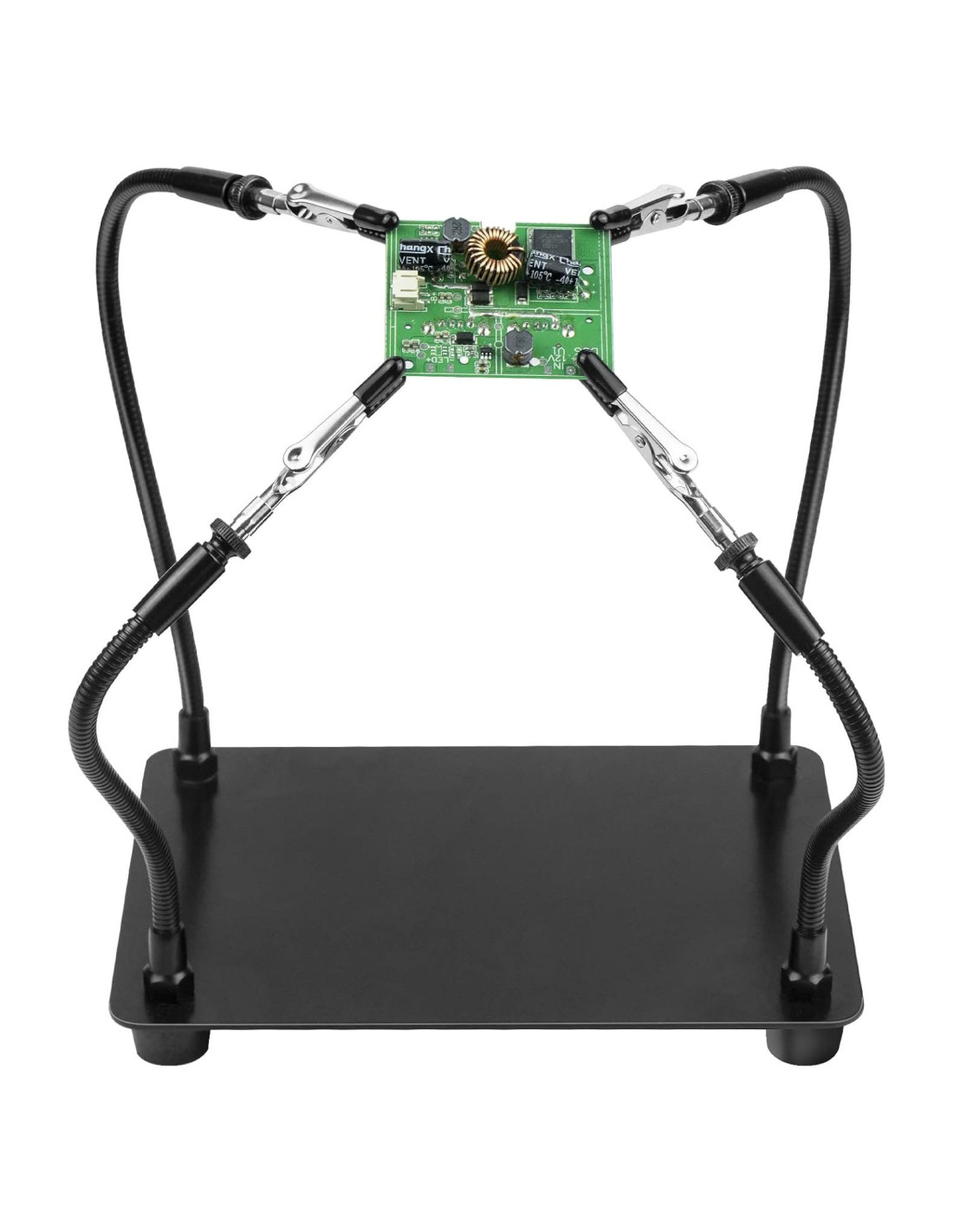 - Estación de Soldadura Helping Hands: Kit de soldadura, ideal para soldadura, ensamblaje, reparación, estilización, pasatiempos, joyería y manualidades. Con brazos de manguera metálica robustos y flexibles, la placa de circuito se puede sostener en la mejor posición que desees.