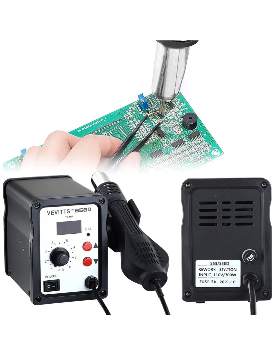 - Seguridad y Amplia Aplicación - Certificado por la FCC, cumple con el estándar UL (EE. UU.), estándar de seguridad/cumplimiento apropiado de EE. UU. Evaluación importante para Aparatos Eléctricos de Seguridad. Diseñado para soldar o desoldar SOIC, QFP, CHIP, PLCC, BGA y otros componentes sensibles a la temperatura, una herramienta esencial para la reparación de teléfonos móviles, reparación de laptops o soldadura de placas de circuito.