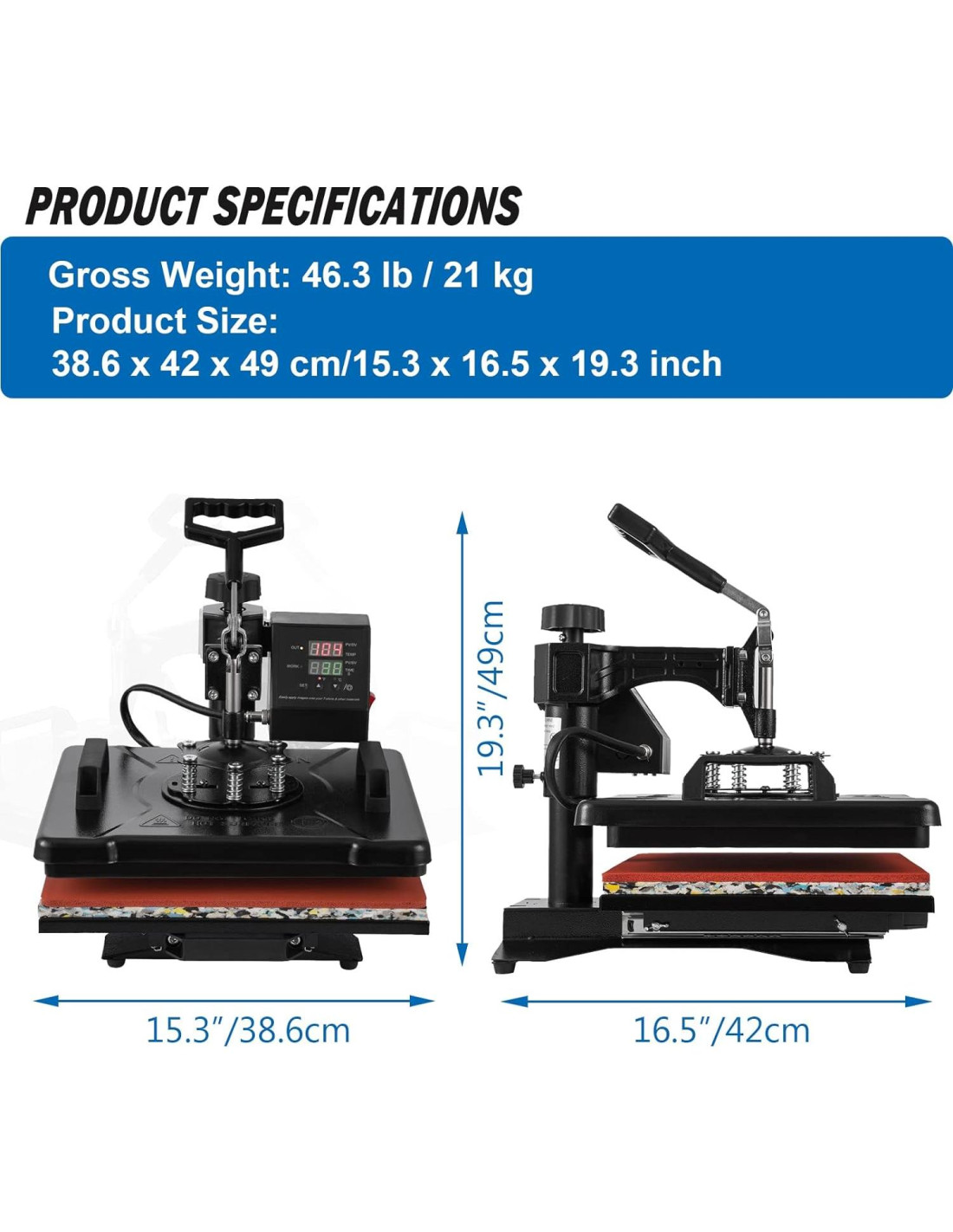 Esta Prensa Térmica Digital 5 en 1 es perfecta para aplicaciones de transferencia de vinilo en prendas, así como para aplicaciones de sublimación en una variedad de artículos en blanco, incluyendo tazas, mugs y gorras de béisbol. El estilo de brazo giratorio es ideal para aplicaciones de sublimación porque su diseño asegura una aplicación uniforme de temperatura para una saturación óptima de tinta en el sustrato deseado.