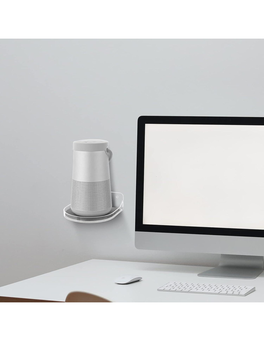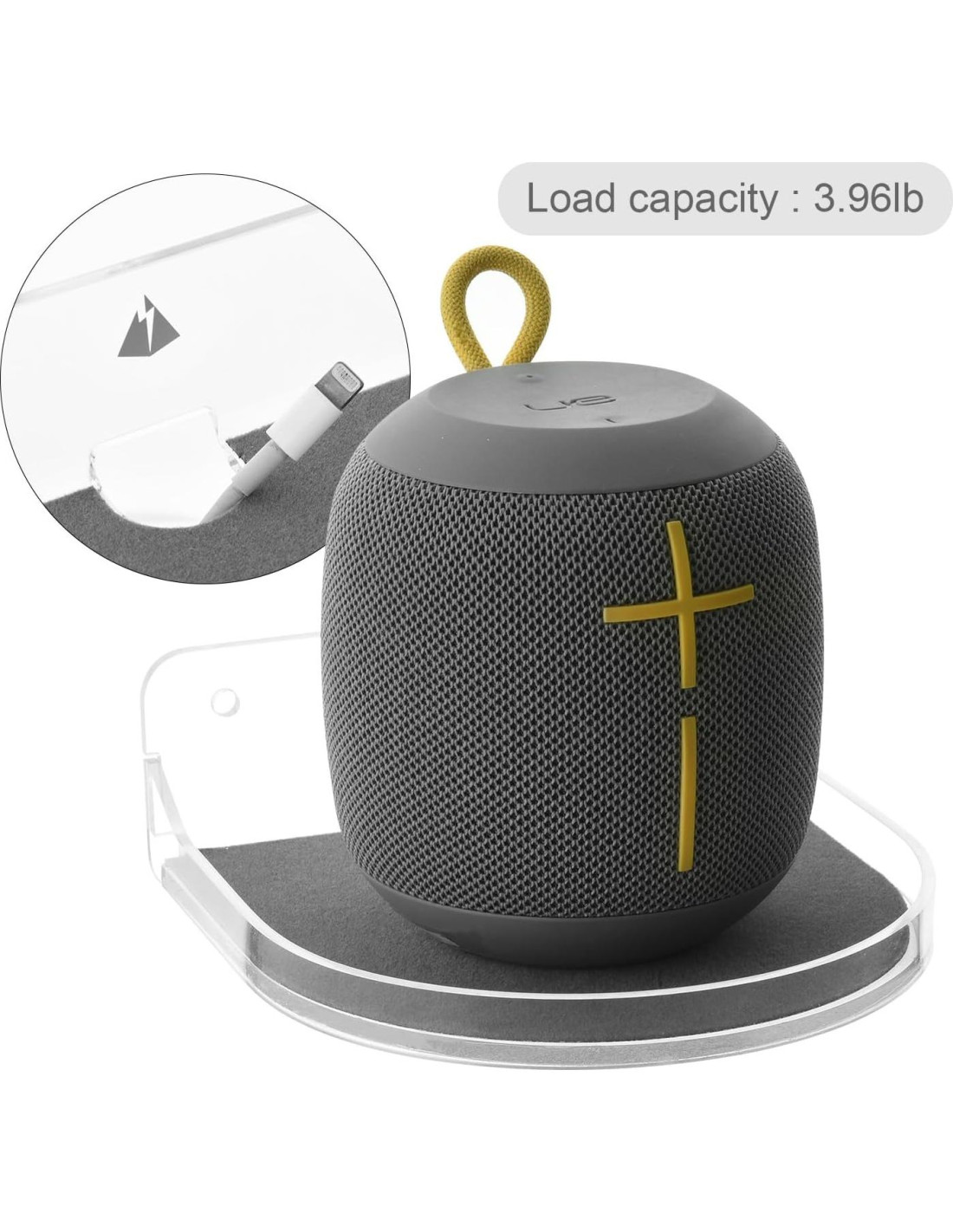 - [Estante para Altavoces Robusto] Montado con tornillos, muy fácil de instalar y no se caerá. Borde elevado sostiene sus colecciones firmemente. Orificio para cable USB para organizar fácilmente los cables de carga del altavoz.