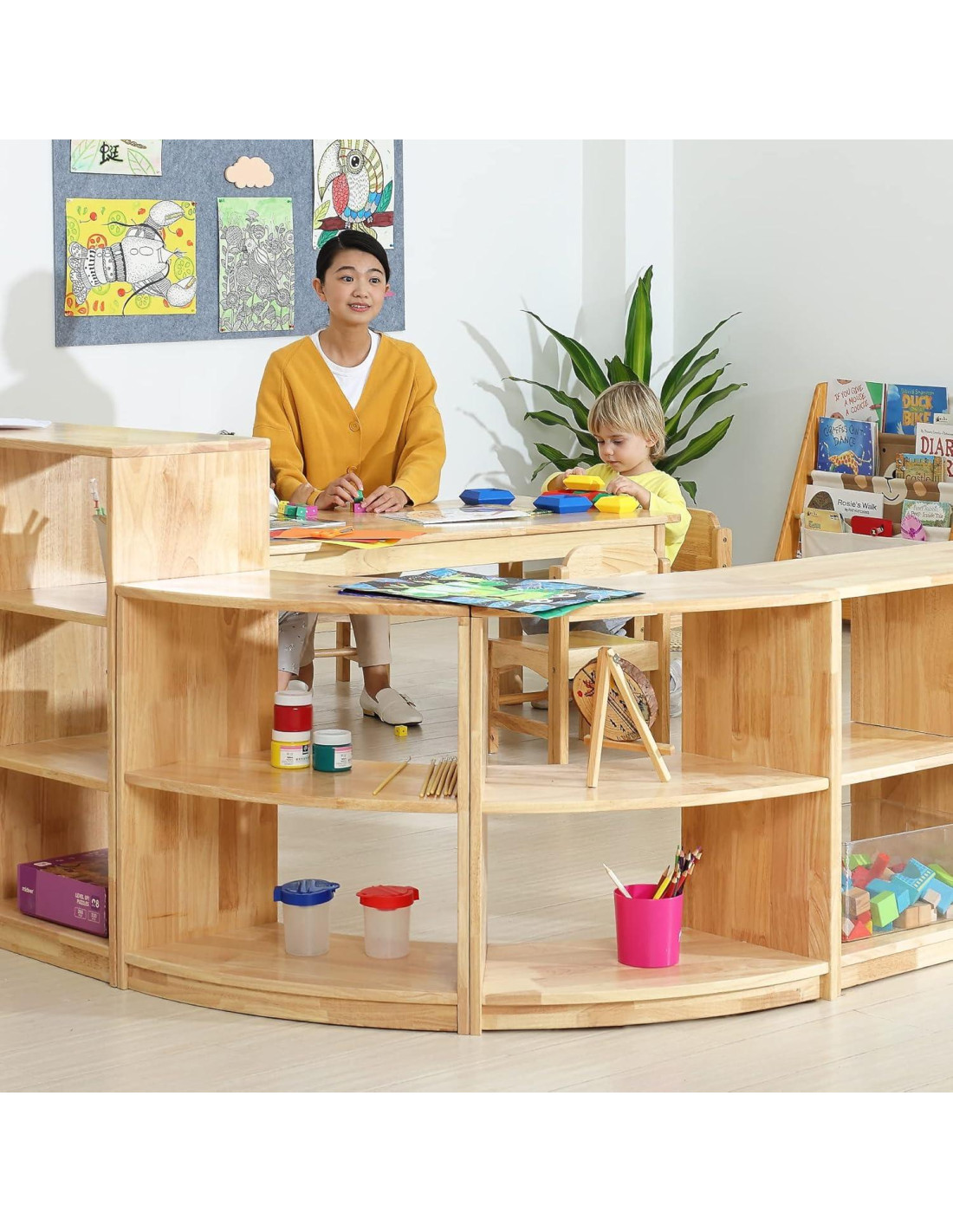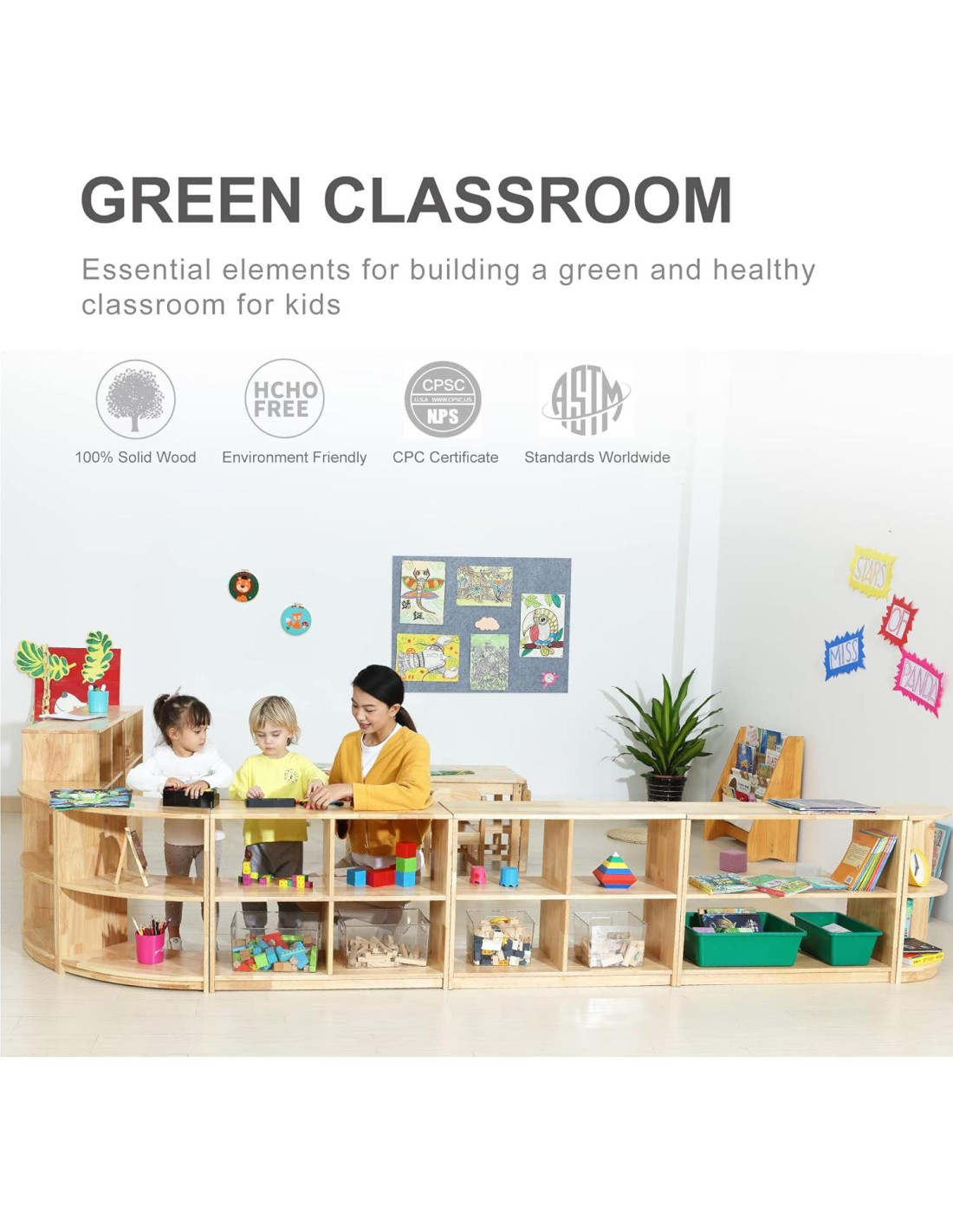 - CONSTRUCCIÓN RESISTENTE: Todas las esquinas y bordes del armario están redondeados en caso de que haya astillas de madera que puedan lastimar a tu pequeño. La base de 2" (5.08 cm) del armario está elevada para evitar que los objetos en el estante inferior se ensucien y refuerza la estructura de la unidad. La altura total del armario es de 23.8" (60.45 cm), lo que mantiene las cosas al alcance de los niños para ayudarles a desarrollar un buen hábito de organización.