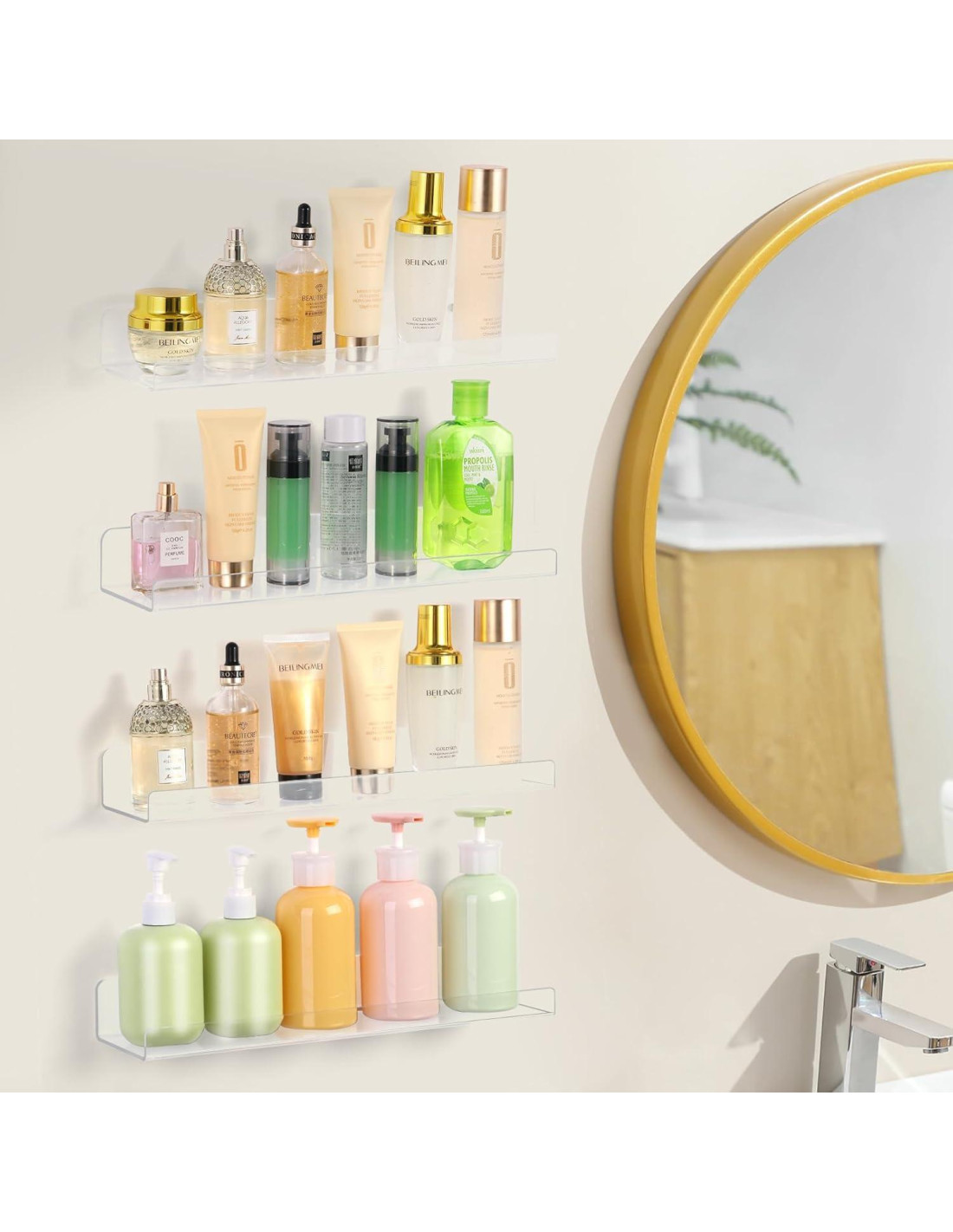 - Estantes flotantes de acrílico versátiles y de múltiples usos. Este paquete de 4 estantes de acrílico para pared que ahorra espacio te permite utilizar el espacio de la pared de manera más eficiente. Perfecto para exhibir marcos, cosméticos, especias o pequeñas plantas en macetas o cualquier artículo desordenado. Usa estos estantes de exhibición invisibles en salas de estar, dormitorios, cocinas, baños o guarderías, maximizando el almacenamiento vertical mientras ahorras espacio.