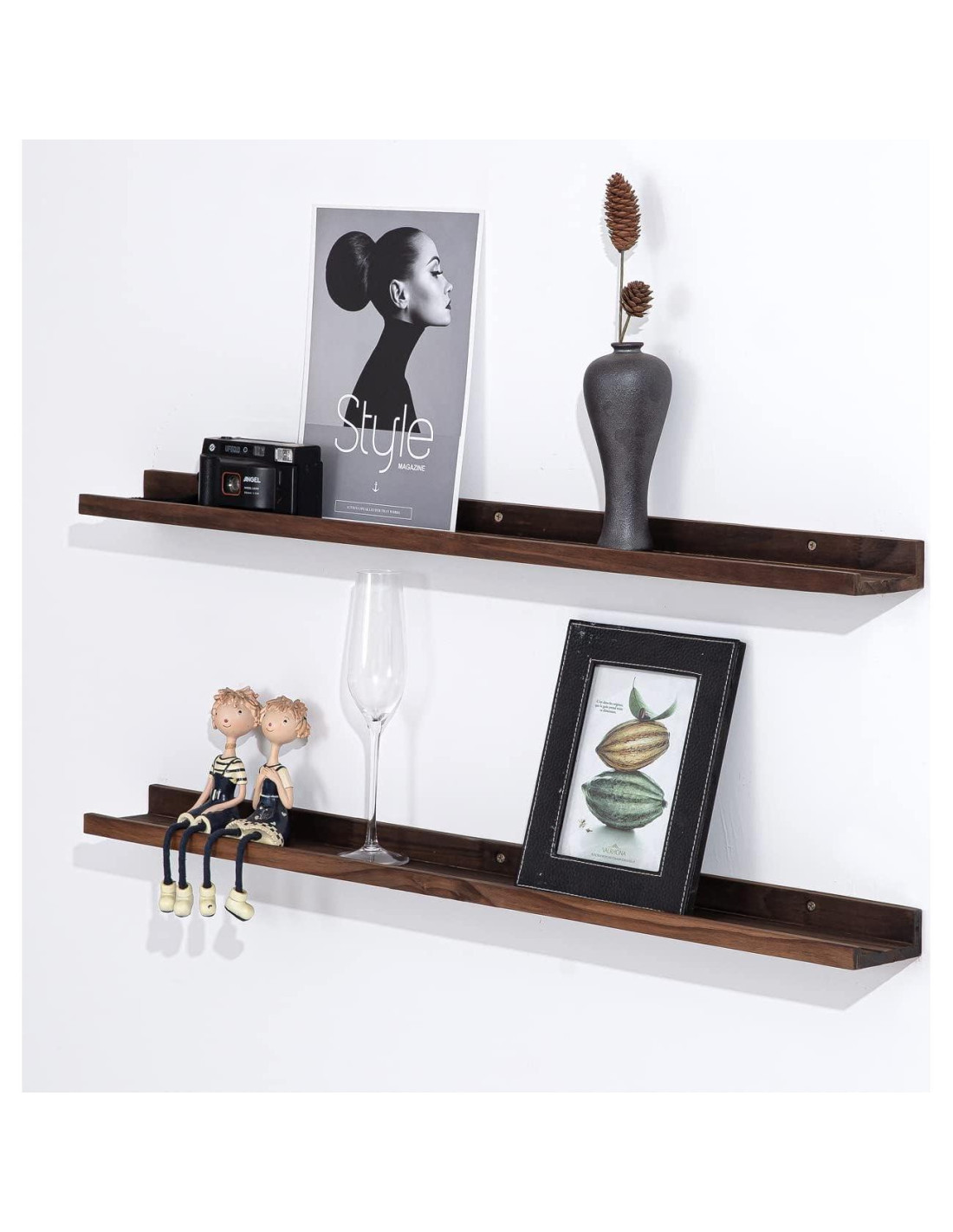 Estanterías Flotantes Montadas en la Pared Multifuncionales Puedes montar la estantería en la pared para exhibir pequeños objetos como llaves, álbumes de fotos, cajas sorpresas, cosméticos o trofeos. ¡También es una idea perfecta colgarla en tu sala de estar como estantería de exhibición! Además, ¡más características interesantes por descubrir por tu cuenta! Fácil de Instalar Fácil de instalar para hacer un espacio razonable para que organices tus artículos de manera ordenada. Una estantería de almacenamiento, una biblioteca, puedes compartir la función para tus diferentes propósitos. Estanterías de Pared de Madera Sólida Hechas de madera sólida, por lo que estas estanterías son lo suficientemente resistentes para sostener tus artículos favoritos. Cada estantería de madera no añadirá demasiado peso a la pared pero puede sostener bien pequeños artículos. Tablero Natural Madera sólida 100% natural tiene una textura clara y una artesanía única para crear un estilo retro. Por favor nota: Todas las dimensiones son medidas manuales con una posible desviación. Especificación Tamaño-48 pulgadas x 3.7 pulgadas x 1.6 pulgadas. Color: Nogal Profundo Nota: hecho de madera natural sin tratar al 100%, el artículo tendrá una ligera diferencia de color.