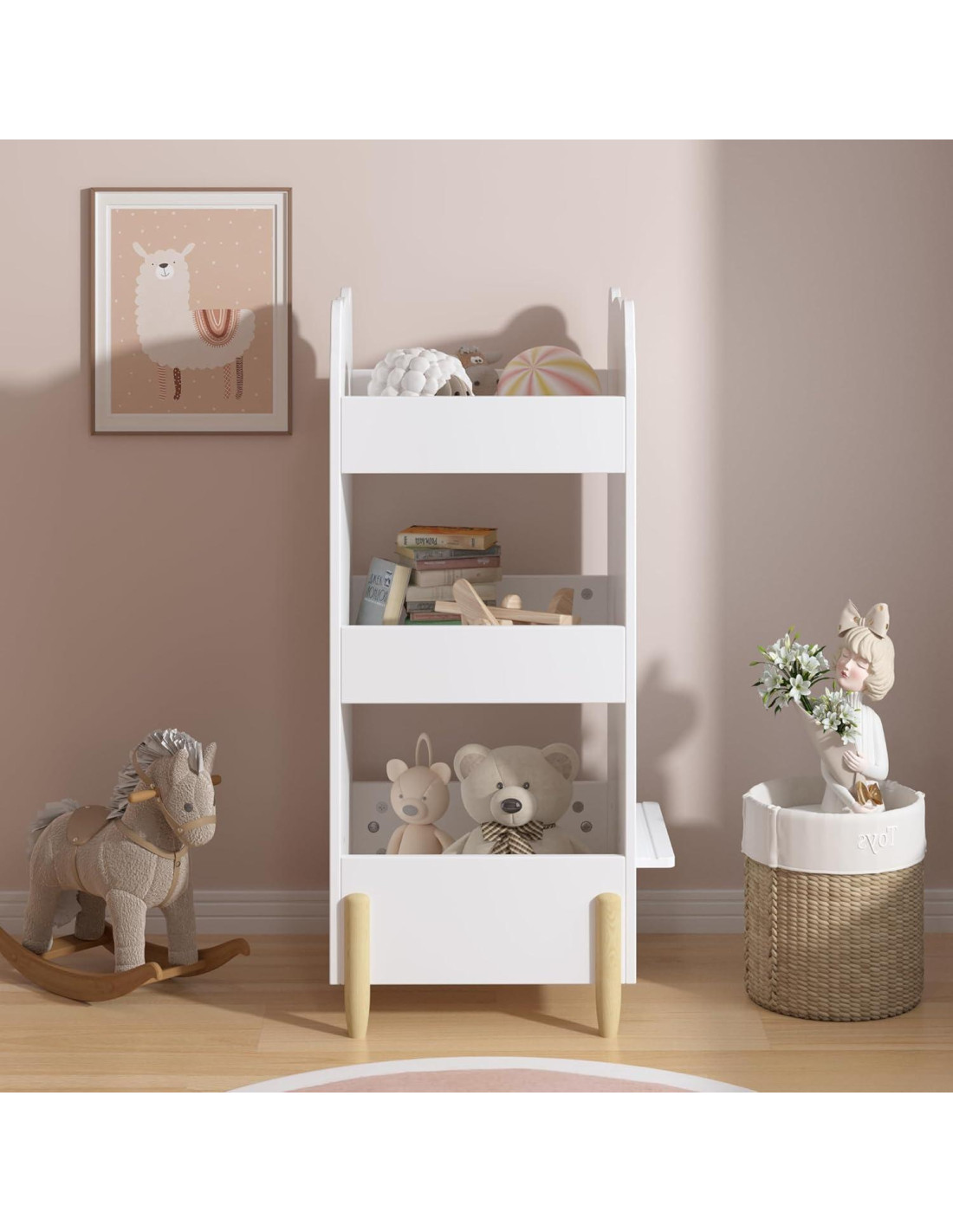 - Estante Abierto de Tres Niveles. Con tres niveles espaciosos y de fácil acceso, este organizador de almacenamiento de juguetes proporciona acceso rápido a libros, juguetes y materiales de arte. Fomenta la selección independiente, hábitos ordenados y un compromiso sostenido con la lectura y el juego.