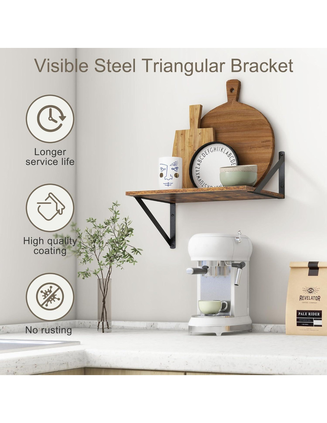 - Estante de Pared Rústico de Granja Estos estantes flotantes están hechos de tableros de madera de ingeniería de primera calidad y un soporte triangular visible. La superficie de grano de madera rústica añade carácter y calidez a cualquier interior moderno o tradicional con estos estantes flotantes profundos, estantes en contraste a alturas escalonadas en la pared o montados uno al lado del otro o en la esquina para un aspecto limpio y elegante.