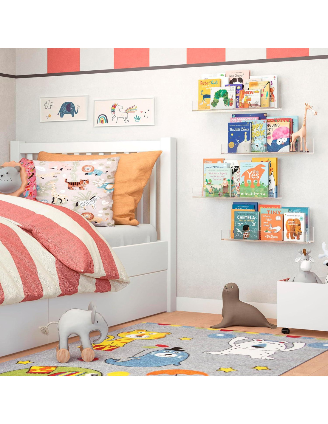 - ACRÍLICO TRANSPARENTE - Nuestros estantes para libros de guardería están hechos de acrílico transparente de alta calidad. Este material duradero es de larga duración y muy fácil de limpiar, permitiéndote transformar cualquier pared sin uso en un espacio de almacenamiento y exhibición moderno y elegante.