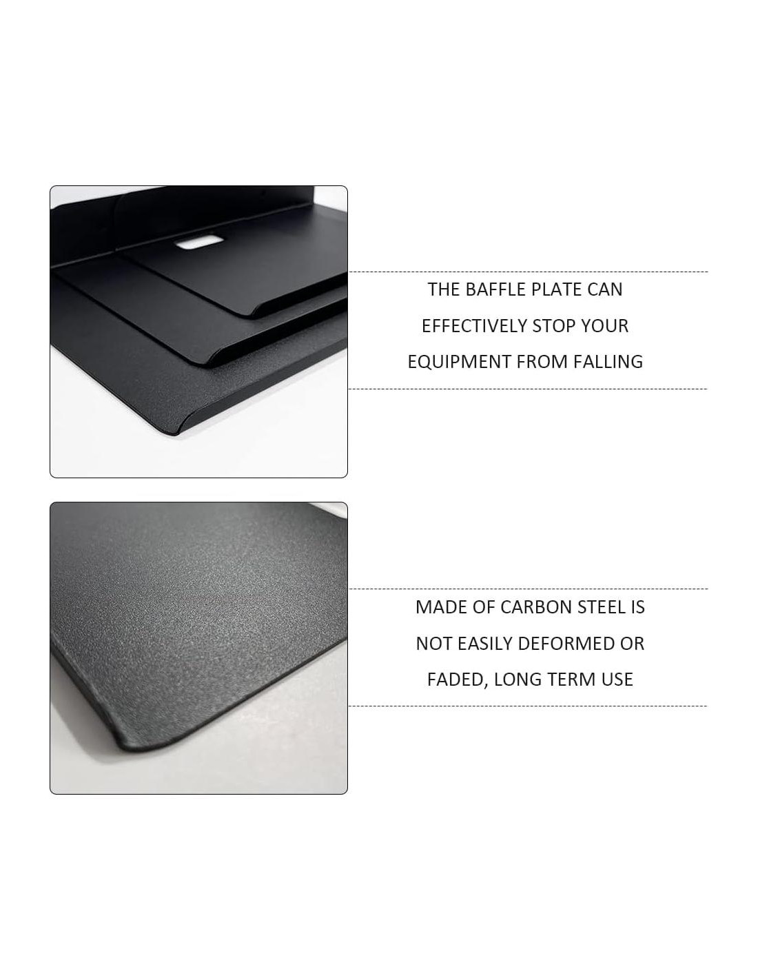 Las tallas pequeña, mediana y grande son suficientes para que elijas. No solo puede exhibir tu enrutador WiFi, altavoz inteligente, monitor de bebé y decodificador, sin necesidad de ocupar espacio extra en el escritorio, sino organizar tus libros, marcos de fotos, teléfonos móviles y controles remotos, aprovechando al máximo el espacio en la pared. El acero al carbono engrosado crea una fuerte capacidad de carga para soportar suficiente peso sin deformarse, un recubrimiento especial para resistir rasguños sin desvanecerse. Un baffle ligeramente elevado en la parte frontal ayuda a detener eficazmente tus dispositivos o artículos de caer. Esquinas redondeadas y superficie suave sin bordes afilados o rebabas que no causarán rasguños en tus manos delicadas, garantizando una experiencia de uso segura. Un agujero extra en el medio hace que el almacenamiento y la disposición de cables sean más convenientes, siempre manteniéndote organizado, despídete de enredos y desorden. Adjunto con pegamento sin clavos para ofrecer una fuerte adhesión, permite montarlo de manera segura en la superficie de la pared seca y suave sin caerse, sin dejar daños al ser retirado. También te proporciona hardware de montaje, para que puedas seleccionar las formas de instalación según tus propias necesidades. Primero, limpia la superficie de la pared con una toalla para que esté limpia y seca. En segundo lugar, aplica el pegamento de manera uniforme en la placa base de forma vertical. En tercer lugar, pega a la pared y presiona con tus dedos por un tiempo. Finalmente, espera aproximadamente 48 horas hasta que esté firmemente fijado.