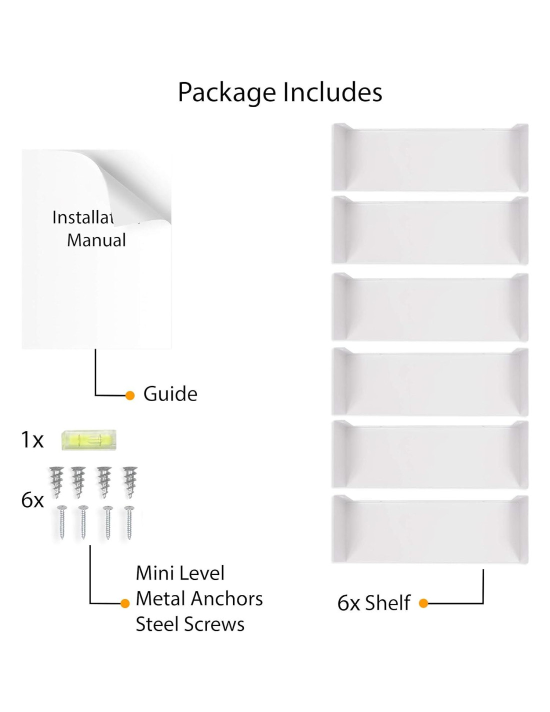 - Exhibición Hermosa: No importa si eres un amante de los libros o del cine, cuelga el juego de estanterías blancas Bali de 6 y disfruta organizando tu colección mientras acentúas la decoración estética de tu habitación.