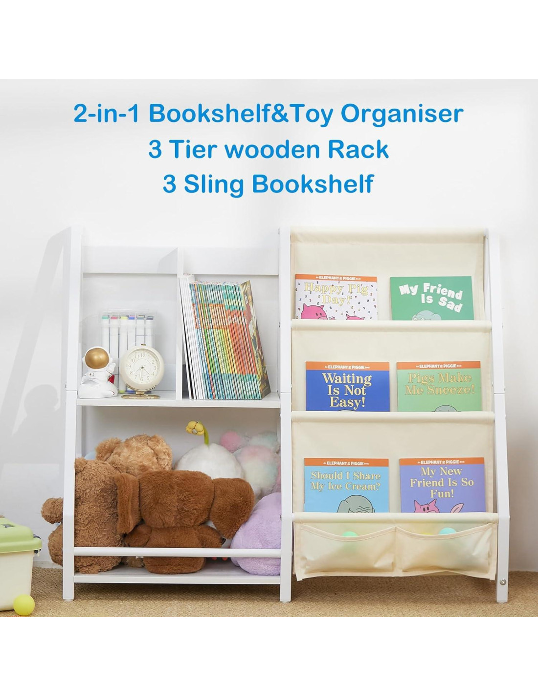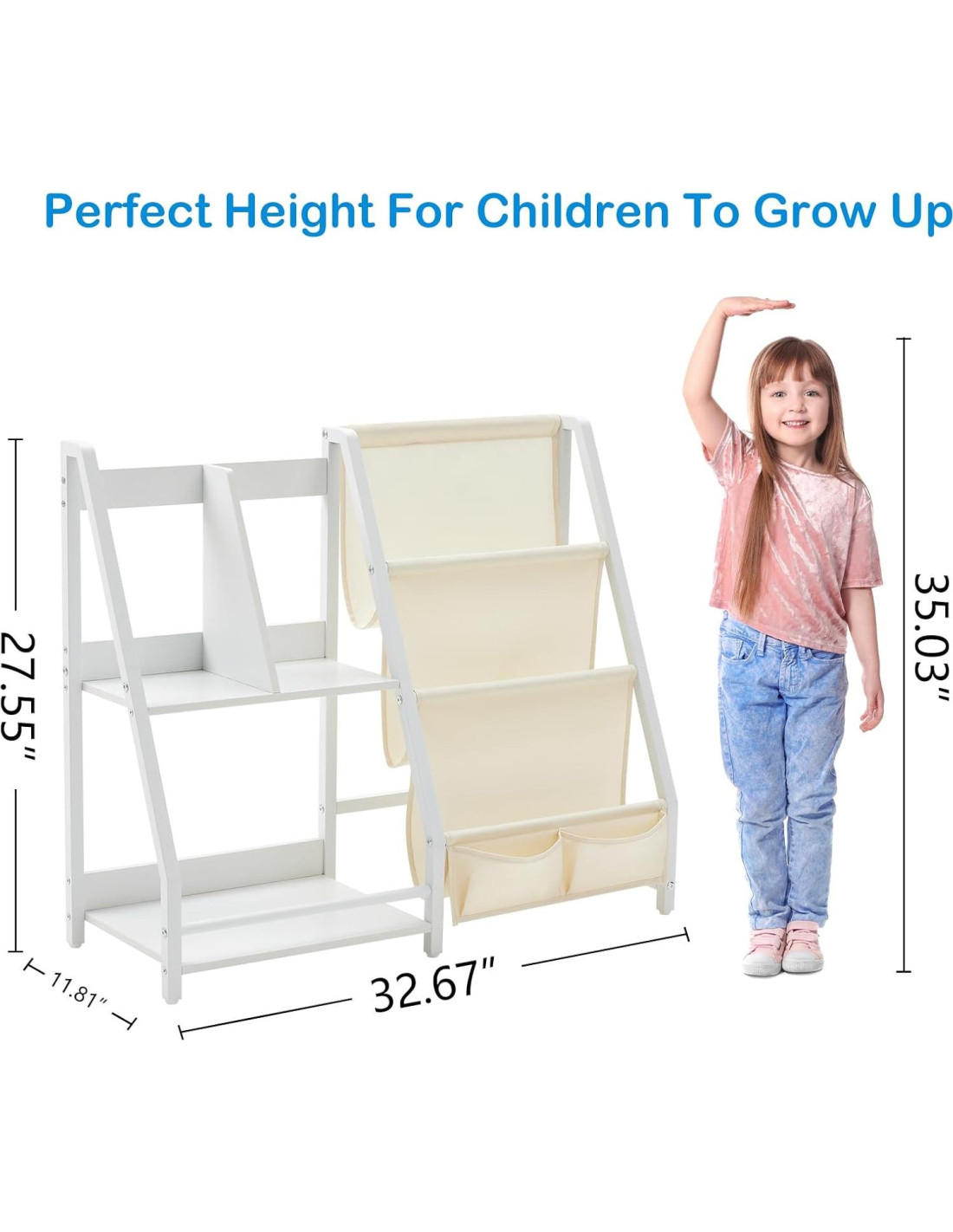 - Diseño multifuncional: Esta estantería cuenta con un diseño partitionado con 4 estantes, cada uno equipado con bolsillos de tela. Este diseño ayuda a los niños a organizar los libros por categoría, mientras que los bolsillos de tela sobre los estantes pueden usarse para almacenar pequeños juguetes, material de oficina y otros artículos, proporcionando espacio de almacenamiento adicional.
