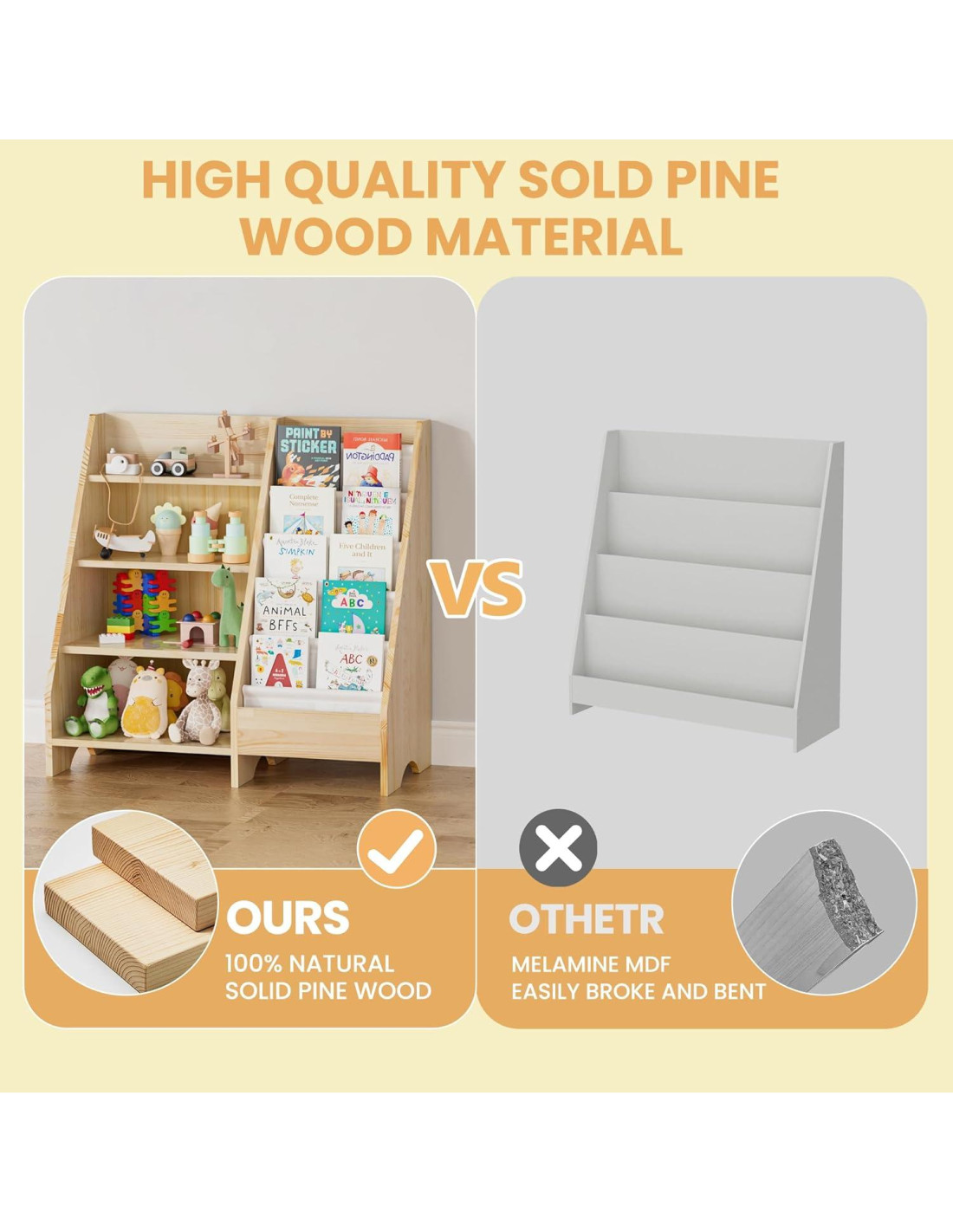 - MATERIAL DE MADERA DE PINO SÓLIDO - Nuestra estantería de madera sólida para niños está completamente hecha de madera de pino sólida, lo que crea una atmósfera cálida y natural para la habitación de su hijo. Cada estantería de almacenamiento para niños es ligeramente diferente en color o patrón, haciéndola ver más única