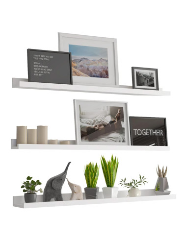 Muestra tus hermosos recuerdos o marcos de arte para personalizar tu espacio vital. Mantén a tu familia y amigos cerca de ti con la ayuda de esta unidad de estante para fotos. Complementa la decoración de tu hogar y convierte cualquier espacio en la pared de tu sala de estar en una decoración de pared con marcos de fotos. La estantería flotante moderna te ayudará a exhibir fotos, libros infantiles, libros de cocina, discos, coleccionables, botellas de vino y muchos más. Las estanterías son un gran regalo para una inauguración de casa o Navidad, haz feliz a alguien en un día festivo o en una ocasión especial.