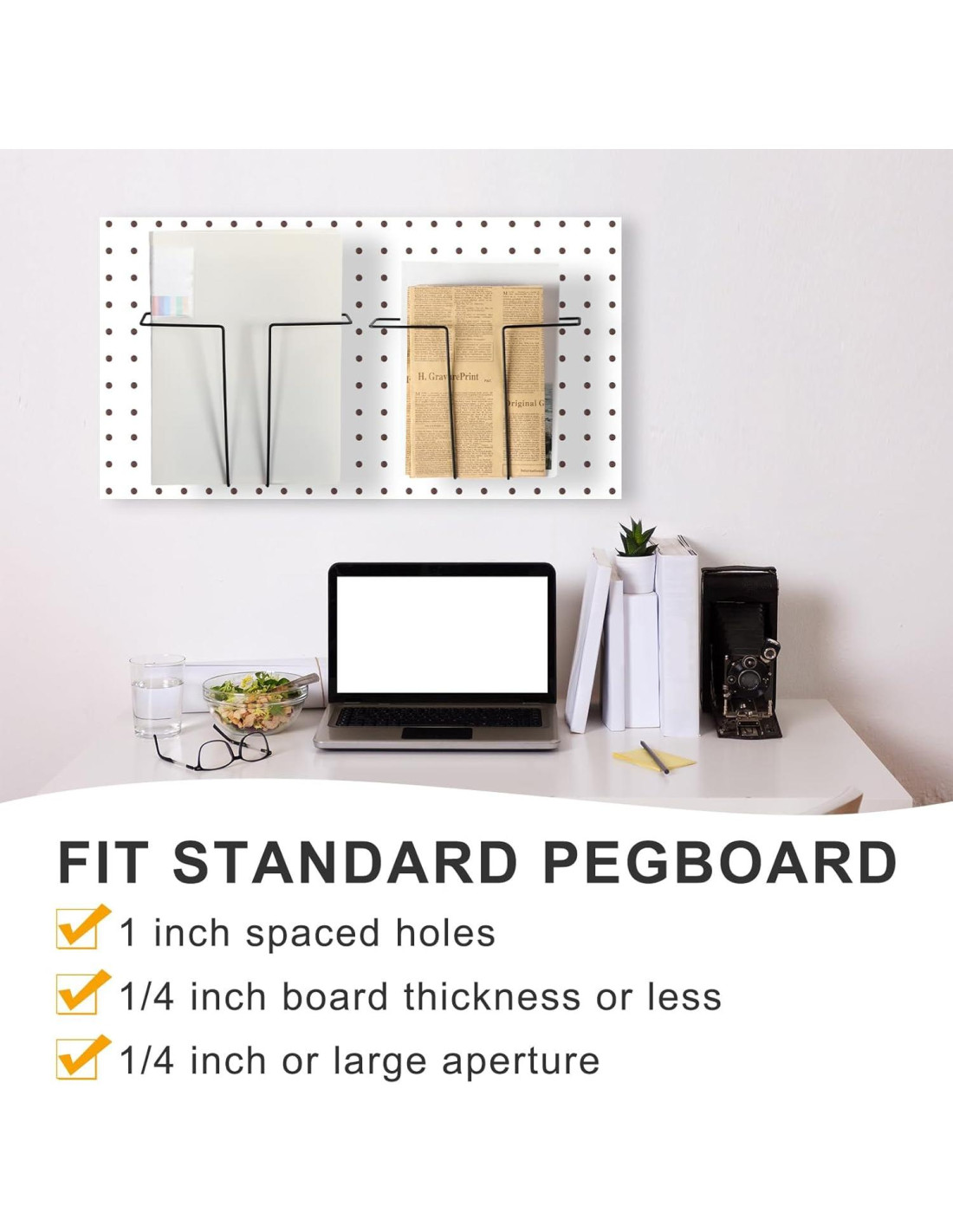 - Instalación Versátil 3 en 1: diseñado para ofrecer una instalación rápida y sin esfuerzo, este exhibidor de documentos es compatible con pegboard, pared ranurada o pared de rejilla, ofreciendo más alternativas para tus necesidades de instalación, simplemente inserta en un ángulo determinado o cuélgalo en el panel para usar, no se necesitan otros accesorios, nuestro estante de documentos ajustable es capaz de sostener casi cualquier documento o papel que desees exhibir