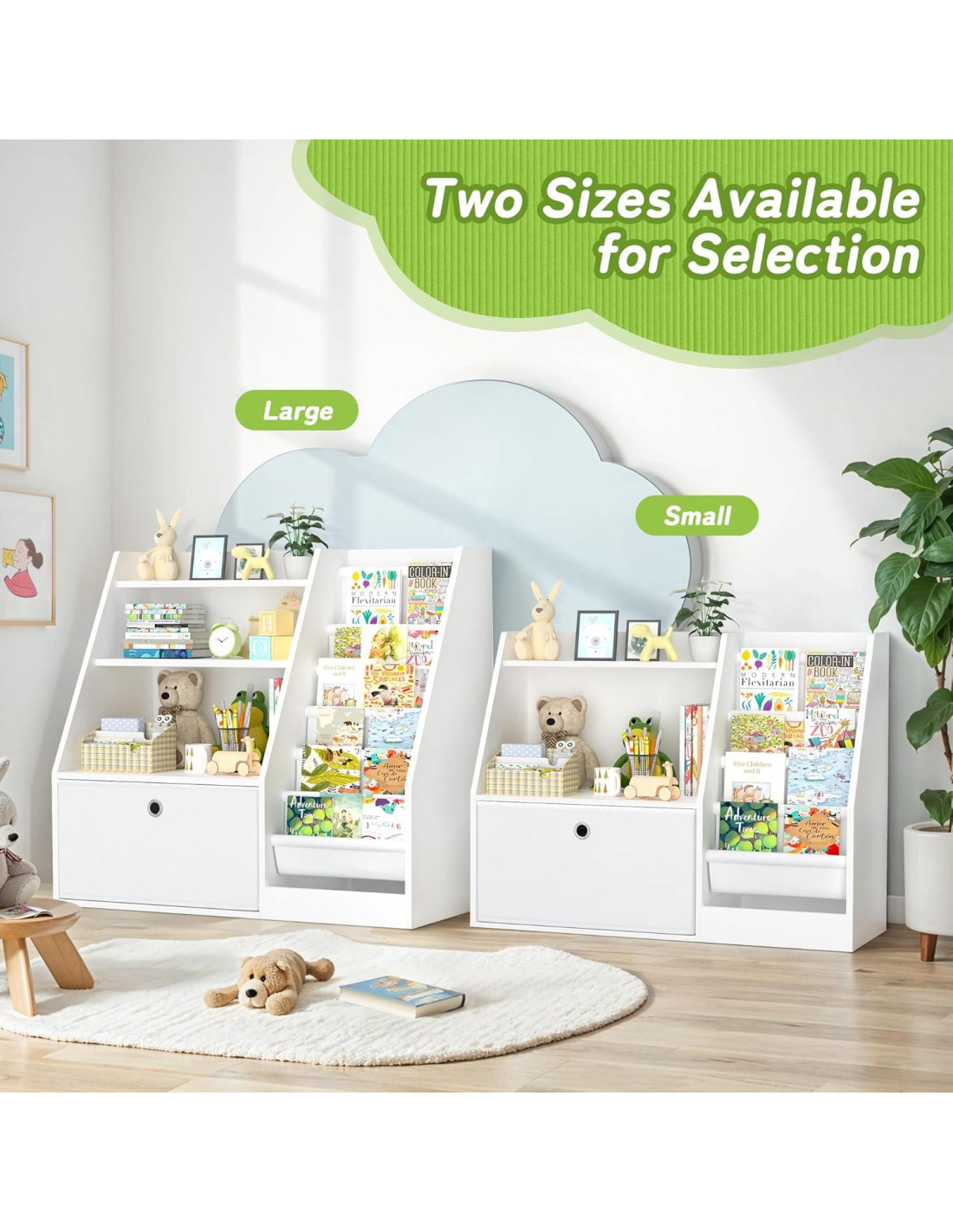 - [Librero de Tamaño Infantil] : Las dimensiones están especialmente diseñadas para niños pequeños. Los estantes de almacenamiento abiertos y los bolsillos para libros permiten que los niños pequeños alcancen fácilmente los artículos en la estantería y organizador para niños. Pueden organizar, exhibir y recuperar de forma independiente sus artículos favoritos. La estantería para niños es compacta, por lo que no requiere mucho espacio y se puede colocar fácilmente en cualquier lugar.