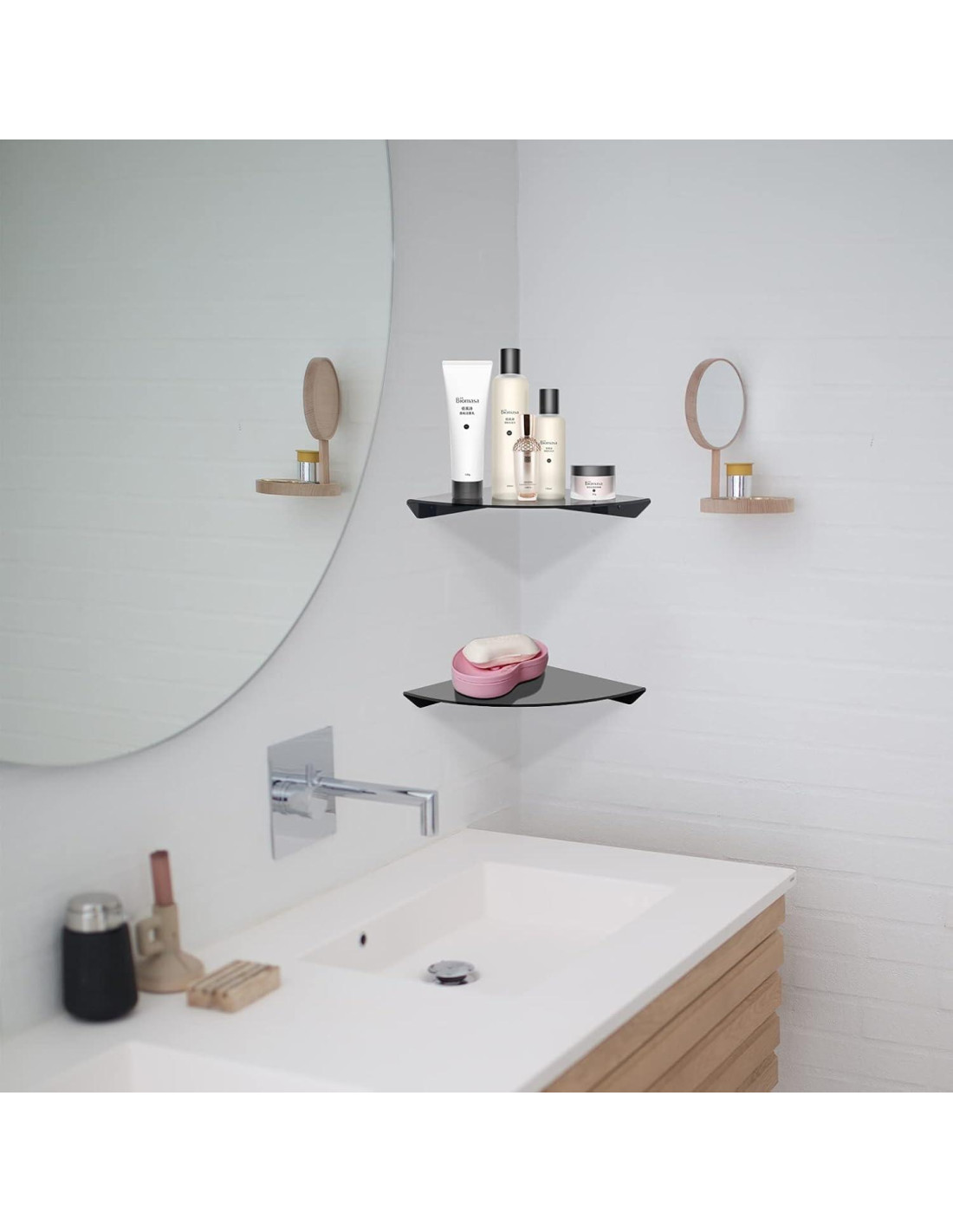 2 Pcs 23 cm Estantes de Esquina Flotantes de Acrílico Montados en la Pared Cuarto Redondo Estante de Ducha Estantes de Esquina de Almacenamiento Organizador de Exhibición para Decoración del Hogar Baño Cocina Dormitorio Sala de Estar - MULTIUSO para sostener varios artículos. - GRAN ÁREA DE SOSTENIMIENTO proporciona un lugar de exhibición de 23 cm x 23 cm en cuarto redondo. - PASILLO DE CABLEADO permite cargar cables o conexiones para dispositivos. - FÁCIL INSTALACIÓN y viene con anclajes de montaje y tornillos.
