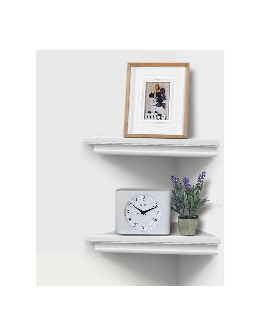 Este juego de 2 estantes de pared blancos es una forma atractiva de agregar espacio de exhibición a su hogar. Úselos para recuerdos, marcos de fotos, jarrones, un reloj despertador y más. Agrupe los estantes juntos o cuélguelos por separado. Hecho de MDF con un acabado blanco clásico. Características: Número de estantes: 2 Accesorios incluidos: Hardware Color: Blanco Material: MDF de alta calidad Dimensiones: 38.1 cm x 25.4 cm x 25.4 cm Instrucciones de cuidado: Limpiar con un paño húmedo. Secar con un paño limpio.
