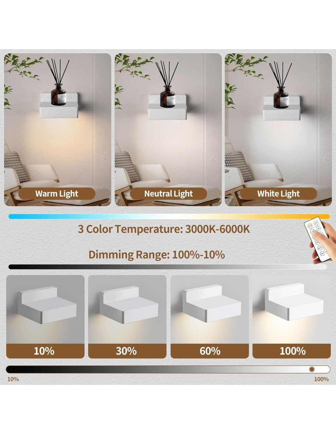 - Estantes de pared pequeños con apliques de pared a batería. Estas luces de pared recargables 2 en 1 combinan un diseño moderno con funcionalidad práctica, añadiendo un toque cálido y contemporáneo a cualquier habitación mientras maximizan la eficiencia del espacio. Sirve como una plataforma de exhibición elegante y una fuente de luz ambiental.