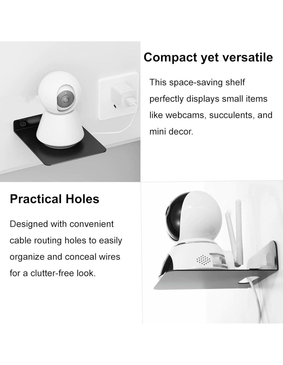 Este pequeño estante de pared se puede usar como un estante de exhibición para pequeñas estatuas, figuritas, marcos de fotos, relojes, plantas. Los agujeros de rosca están diseñados para servir como un estante de montaje para cámaras, monitores para bebés, altavoces pequeños y luces pequeñas. Buena Opción para la Decoración de Tu Hogar, puedes colocar macetas suculentas u otros pequeños jardineros en el estante para agregar un toque de color y una vibra fresca a tu sala de estar, sala de estudio y dormitorio. Este pequeño estante flotante está hecho de aleación de aluminio, es a prueba de óxido y a prueba de agua. Fácil de limpiar. El pequeño estante de pared incluye agujeros de gestión de cables integrados, manteniendo los cables organizados y fuera de la vista para una apariencia elegante mientras libera espacio en la pared. La construcción de aluminio de alta calidad asegura una durabilidad excepcional, estabilidad y resistencia a la carga. Este pequeño estante de metal soporta hasta 4.54 kilogramos. El paquete de estantes de pared incluye tornillos de acero inoxidable 304 para un montaje seguro. Agujeros pre-perforados (9mm) para una fácil instalación en paredes sólidas o paneles de madera.