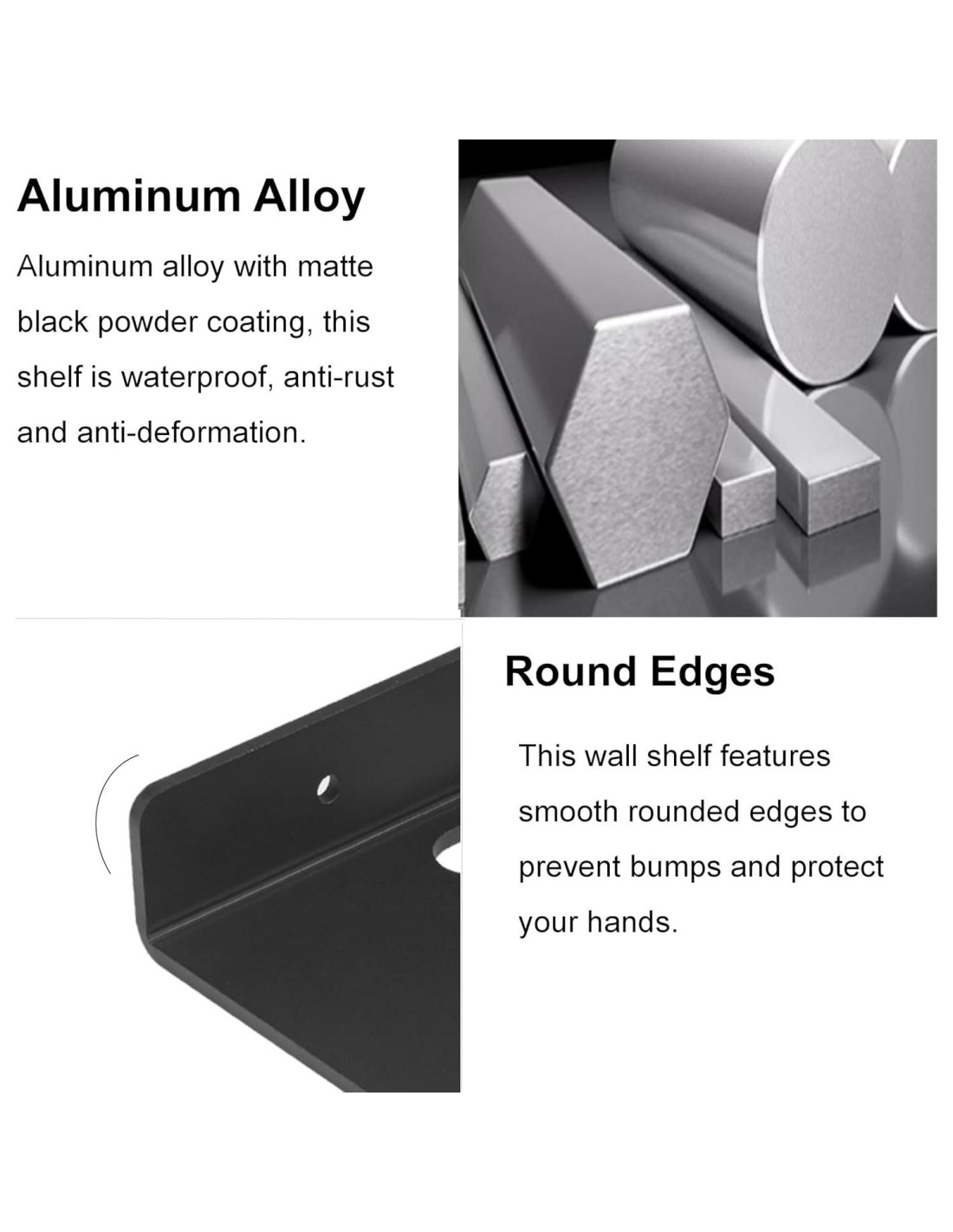 - Duradero y Práctico: Hecho de aleación de aluminio ligera pero resistente, estos estantes flotantes son a prueba de agua, resistentes al fuego, a prueba de deformaciones y a prueba de óxido. Su superficie suave hace que la limpieza sea sencilla, asegurando belleza y funcionalidad duraderas.