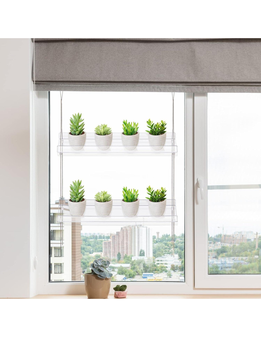 - TAMAÑO DE VENTANA ADECUADO: El estante de una sola capa mide 16"L x 6"W x 0.8"H (40.64 cm x 15.24 cm x 2.03 cm), soporta un peso de 20 lb (9.07 kg) para exhibir macetas, suculentas y hierbas en la cocina y la sala de estar. La longitud de cada cable es de 52 pulgadas (132.08 cm), la altura de 2 capas evita que los gatitos rasquen las plantas, protegiendo sus plantas.