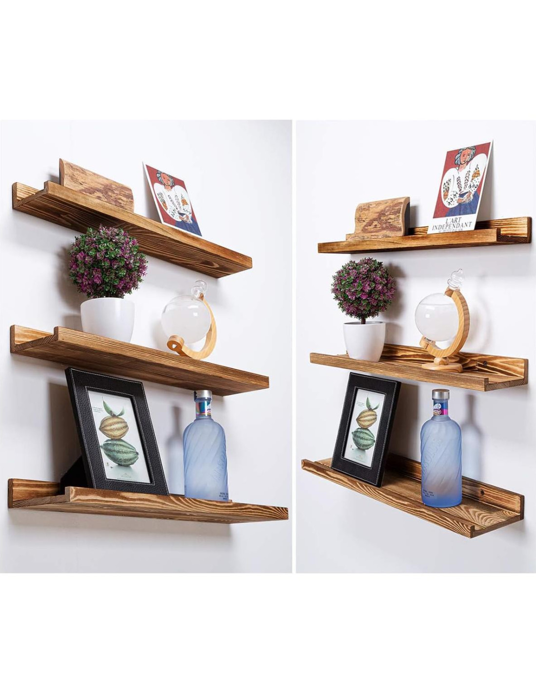 - Estantes para Fotos Resistentes y Duraderos: Estos estantes flotantes de pared están hechos de pino natural puro, lo que los hace resistentes y duraderos. Y tiene una estética de estilo rústico de granja, que puede agregar una atmósfera rústica, retro y natural a tu habitación. El diseño simple puede combinar perfectamente con cualquier estilo de muebles y decoración.