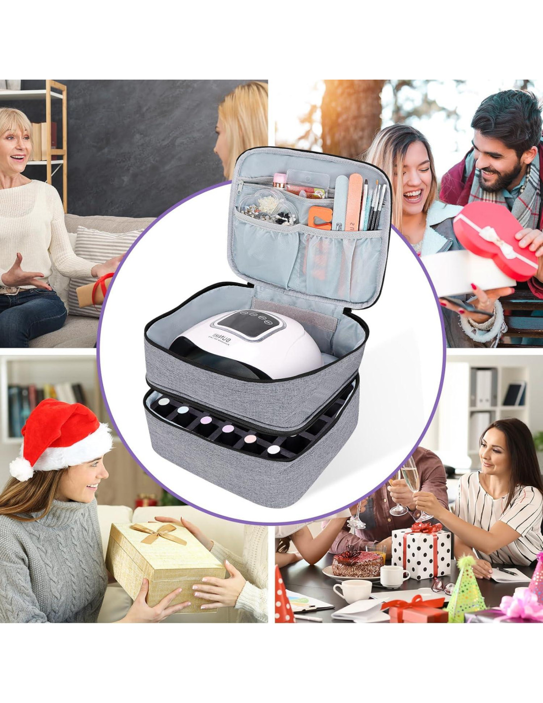 - [Gran Regalo] Bolsa de Esmalte de Uñas. Un gran regalo para la mejor amiga, hija, mamá, novia o esposa en varios festivales como cumpleaños, Día de San Valentín, Navidad y Día de la Madre, etc., el estuche para llevar esmalte de uñas tiene un asa resistente en la parte superior perfecta para uso diario en casa, llevándola a amigos o clientes para manicura o viajes.