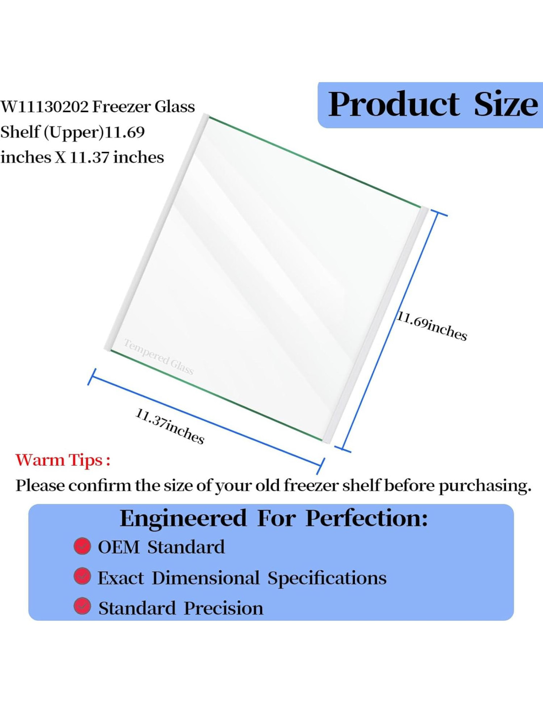 - Diseñado para la sección de congelador de Whirlpool - Este estante de vidrio para congelador W11130202 está hecho para el área superior del congelador en el reemplazo de estantes de whirlpool. Con dimensiones exactas de 29.69 cm x 28.83 cm, es una gran opción para restaurar la organización y el rendimiento de almacenamiento de su refrigerador