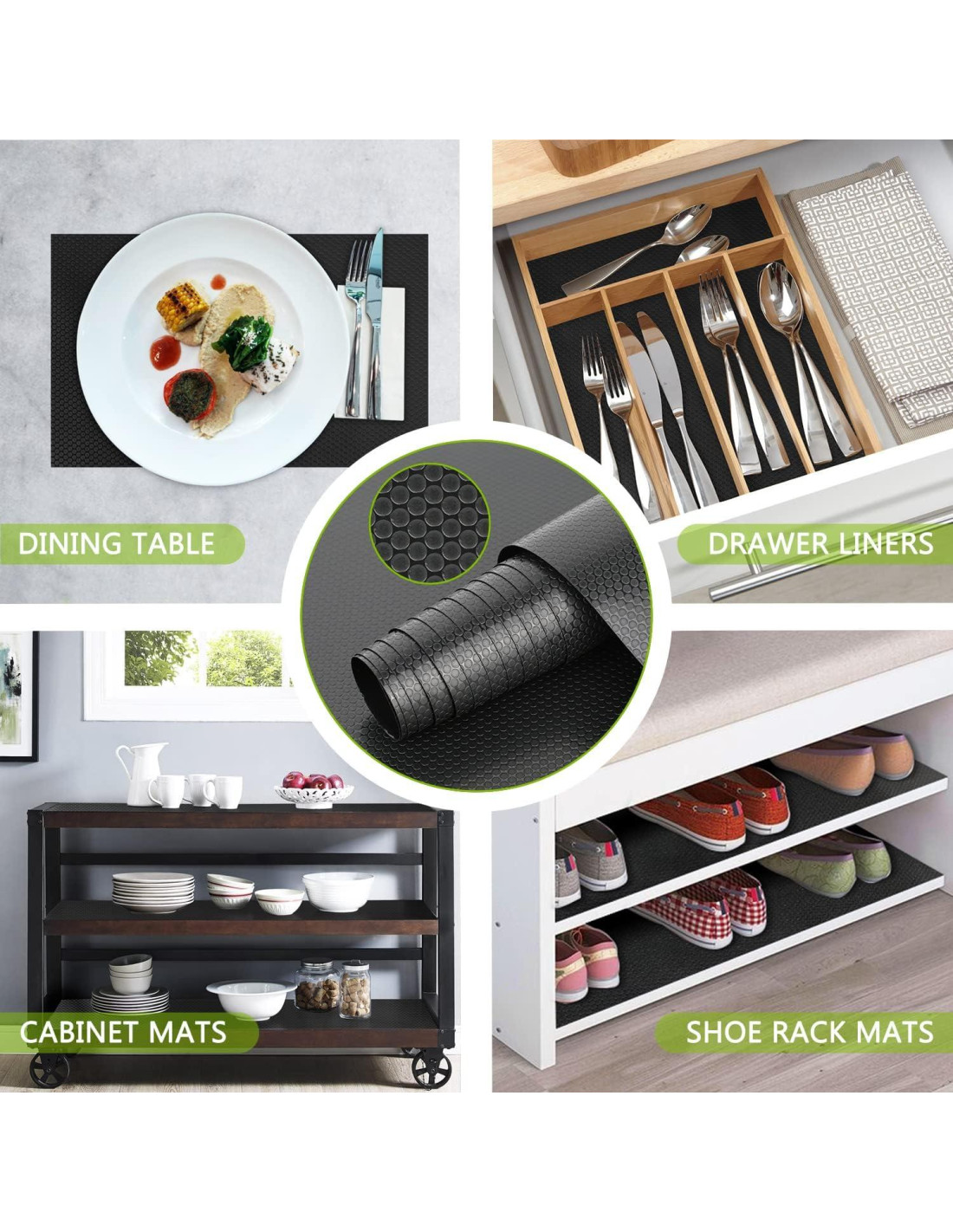 - DISEÑO NOVEDOSO Y NO ADHESIVO: Almohadillas de goma EVA no adhesivas para armarios de cocina, cajones, despensa, armario, organizador de cajones. El forro de cajón está diseñado con textura de puntos en un lado, y el otro lado es una superficie lisa. El lado liso no es adhesivo, por lo que puedes quitar fácilmente el forro, pero si deseas fijar el forro de estante, puedes pegar las cuatro esquinas con cinta adhesiva de doble cara.