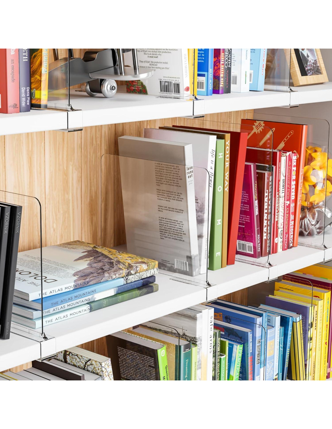 - [Fácil instalación/Calidad Duradera] Nuestros divisores de estante acrílico ofrecen versiones que son compatibles con grosores de armarios de 0.2-1 (0.5-2.5 cm) pulgadas o 0.4-1.2 (1-3 cm) pulgadas, los clips en la parte inferior están reforzados y elige la versión apropiada sin preocuparte por romperse y la almohadilla de silicona antideslizante pegada en la parte inferior protege perfectamente tus estantes de madera y armario
