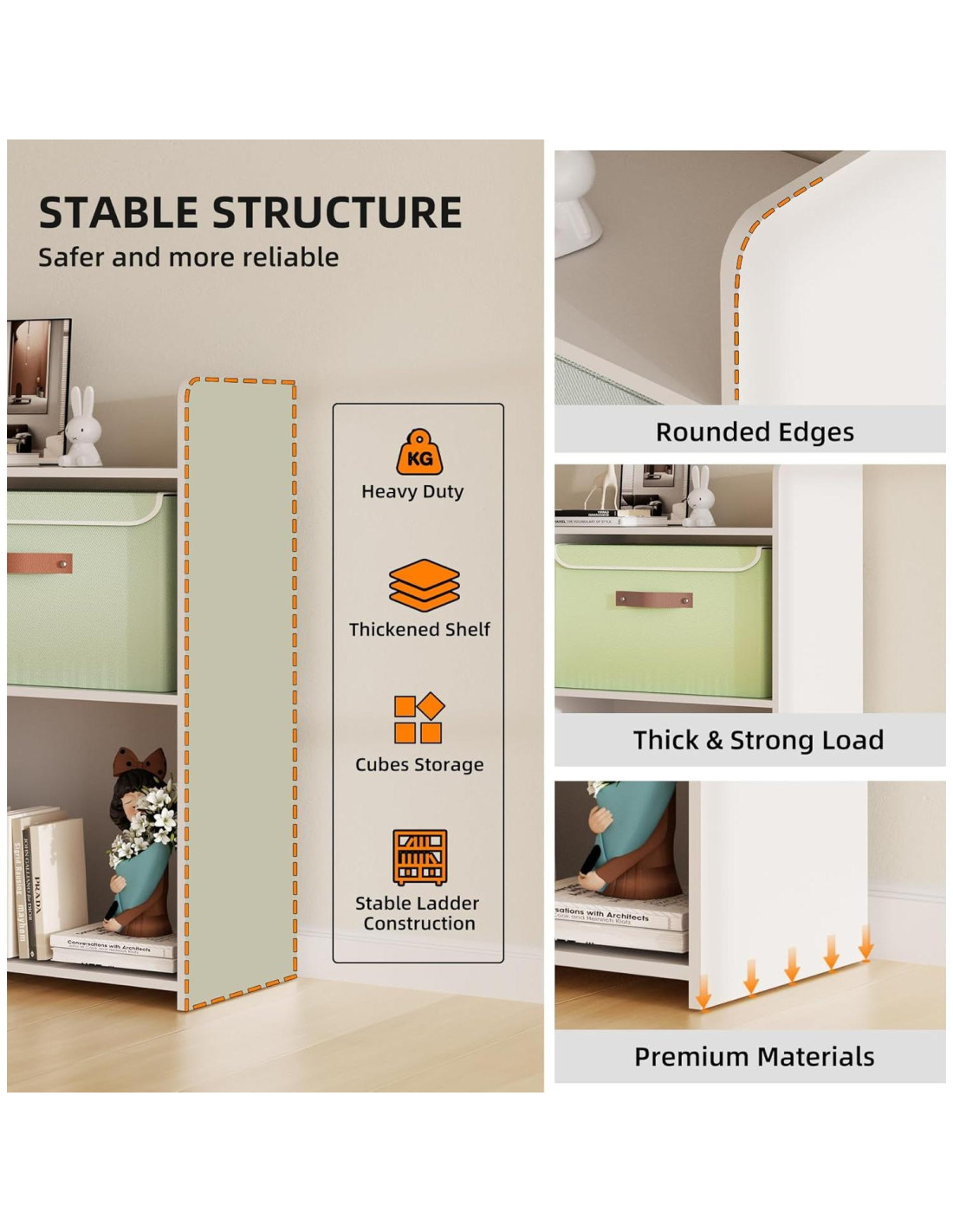 - Apariencia Moderna: La estantería blanca suave te permite colocar juguetes y libros de manera organizada, ayudando a desarrollar buenos hábitos de almacenamiento en tu hijo. La superficie suave y resistente al agua se limpia fácilmente con un paño húmedo. Es ideal para una estantería de guardería o estante de almacenamiento de juguetes para niños