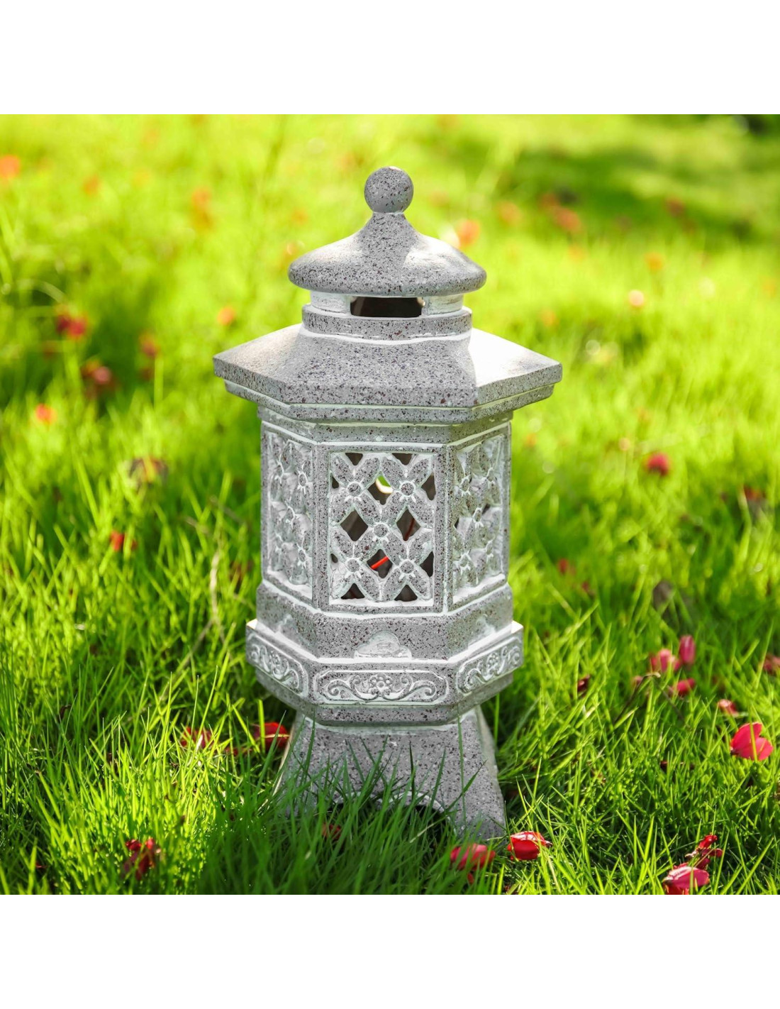 - [Diseño Original] Crea un mágico oasis Zen en tu jardín oriental exterior con la lámpara pagoda solar de aspecto piedra que combina perfectamente con la estatua de Buda.