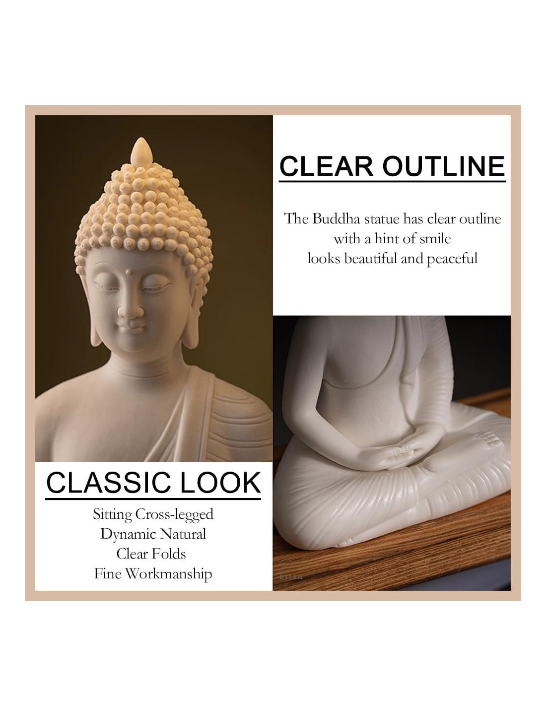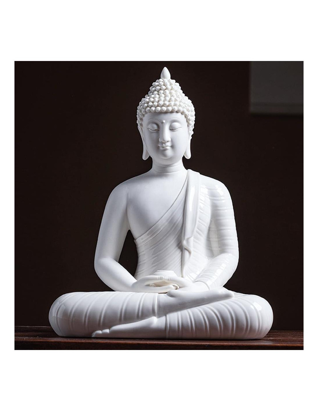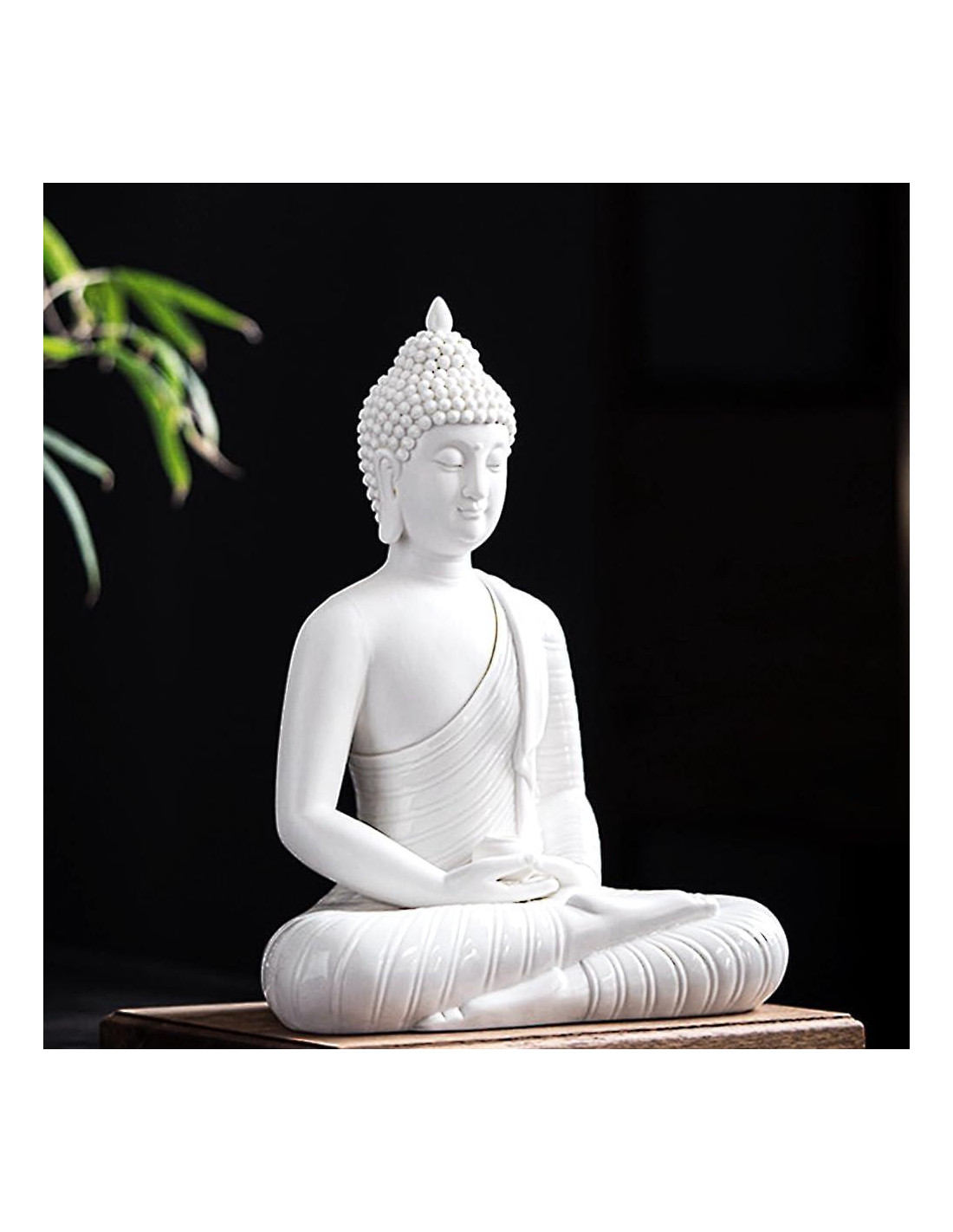 Estatuas de Buda de Cerámica de 8.6 pulgadas (21.8 cm) para Decoración del Hogar, Estatua de Decoración de Buda Shakyamuni Interior Exterior (Blanco)