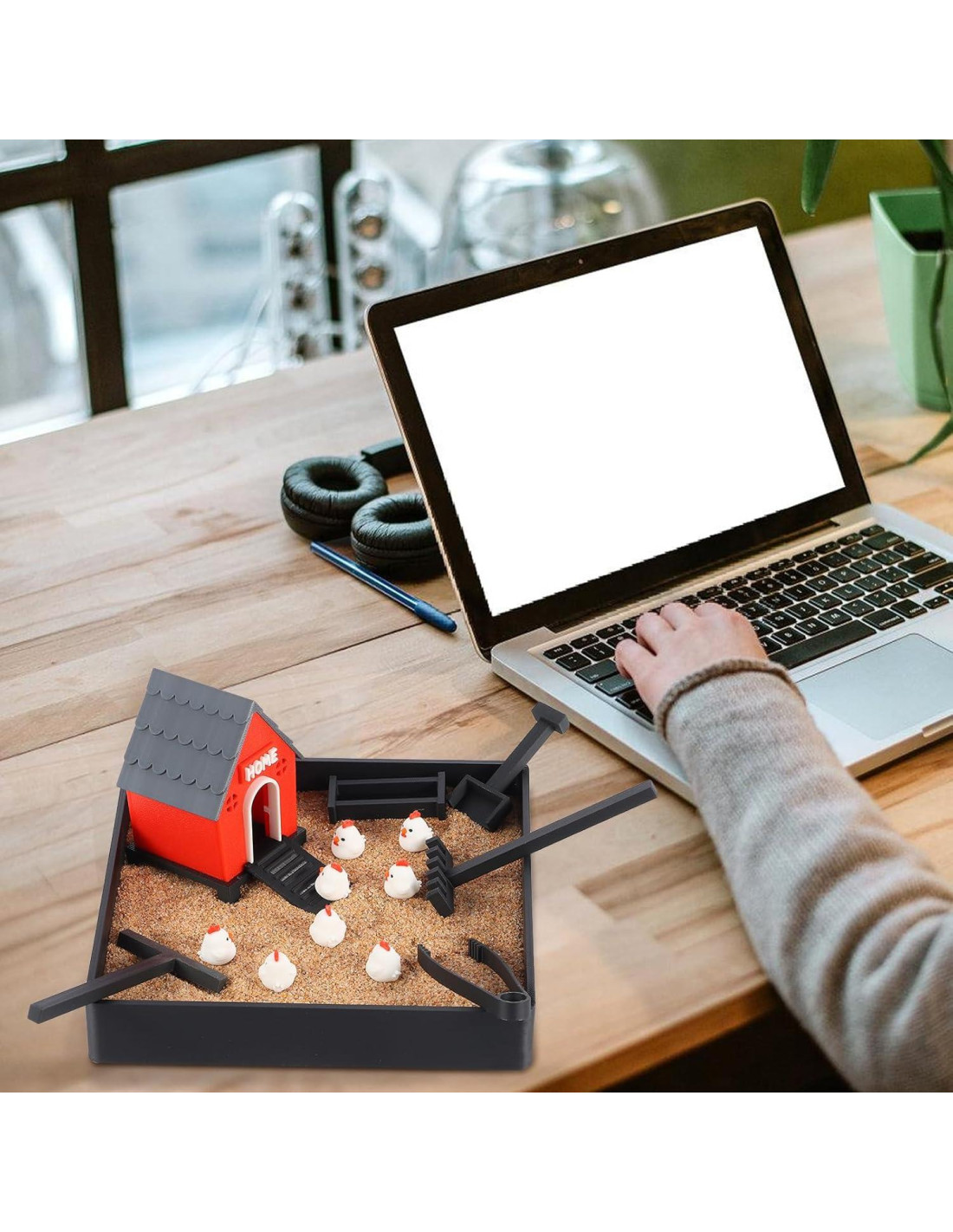 - Alivio del Estrés y Regulación Emocional: Coloca este jardín zen de arena en tu escritorio, y cuando trabajes en tareas estresantes, puedes calmarte interactuando con las gallinas y rastrillando la arena. Cuidar de tu pequeño espacio tranquilo ayuda a reducir la ansiedad y el estrés, ofreciendo ventajas de regulación emocional y manejo del estrés. Un jardín zen de escritorio como este es una excelente herramienta para la terapia de jardín zen de arena.