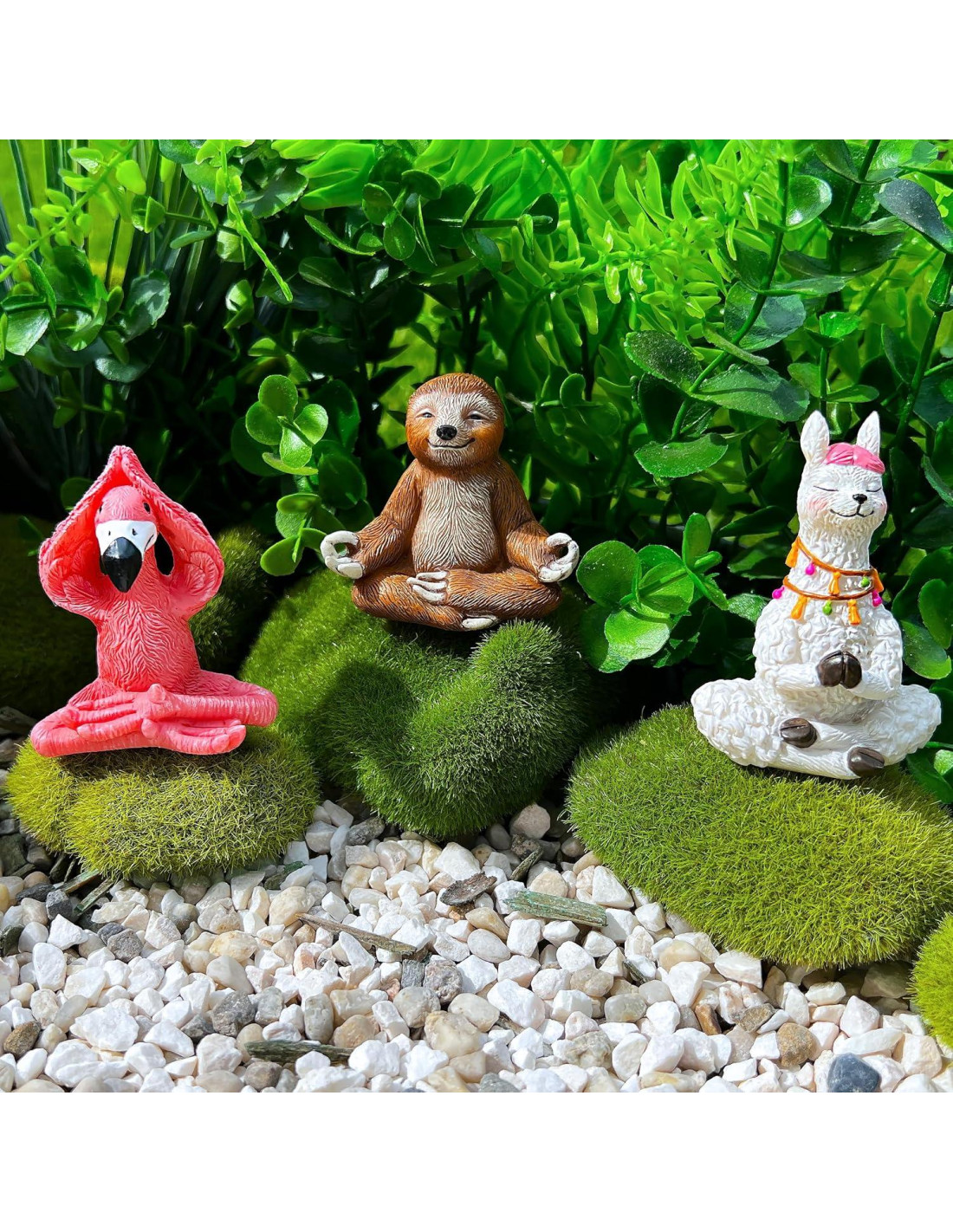 - Figuras de Yoga Miniatura en Pose de Meditación. Práctica espiritual unida por Flamencos, Perezosos y Llamas. Las mini estatuas están pintadas a mano y hechas de resina de alta calidad.