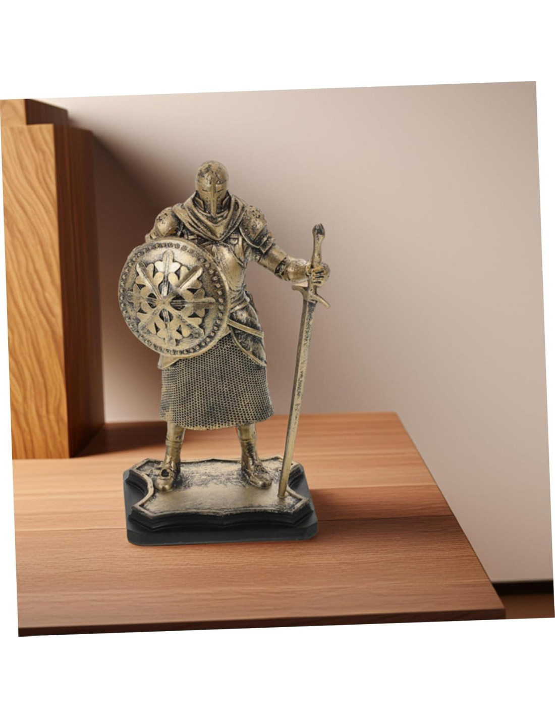 Pieza decorativa creativa: esta figura de caballero de resina vintage es una adición práctica a cualquier hogar, añadiendo un toque de creatividad y elegancia, escultura romana, estatua de caballero en armadura. Opción decorativa reflexiva: esta estatua de caballero es una opción decorativa reflexiva y única para amigos, familiares o colegas que aprecian la decoración artística e histórica, figuras de acción de caballero, estatua. Artesanía resistente: elaborada con resina resistente, esta estatua de caballero presenta una fina artesanía y un diseño detallado para un aspecto de alta gama, soporte para bolígrafos en forma de torre, cartel de figura. Figuras de caballero ornamentales retro Decoración medieval Estatuas de caballero Escultura coleccionable de caballero Miniaturas Estatua de caballero con coraza Resina sintética dorada.