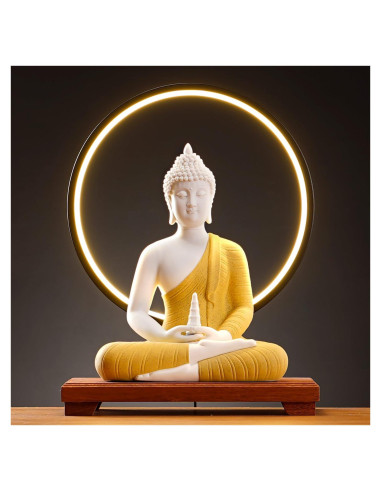 - Se incluye una lámpara de mesa circular LED. La lámpara de Buda ilumina la estatua de Buda, haciéndola brillar. La luz de anillo realza la belleza y serenidad de la estatua de Buda.