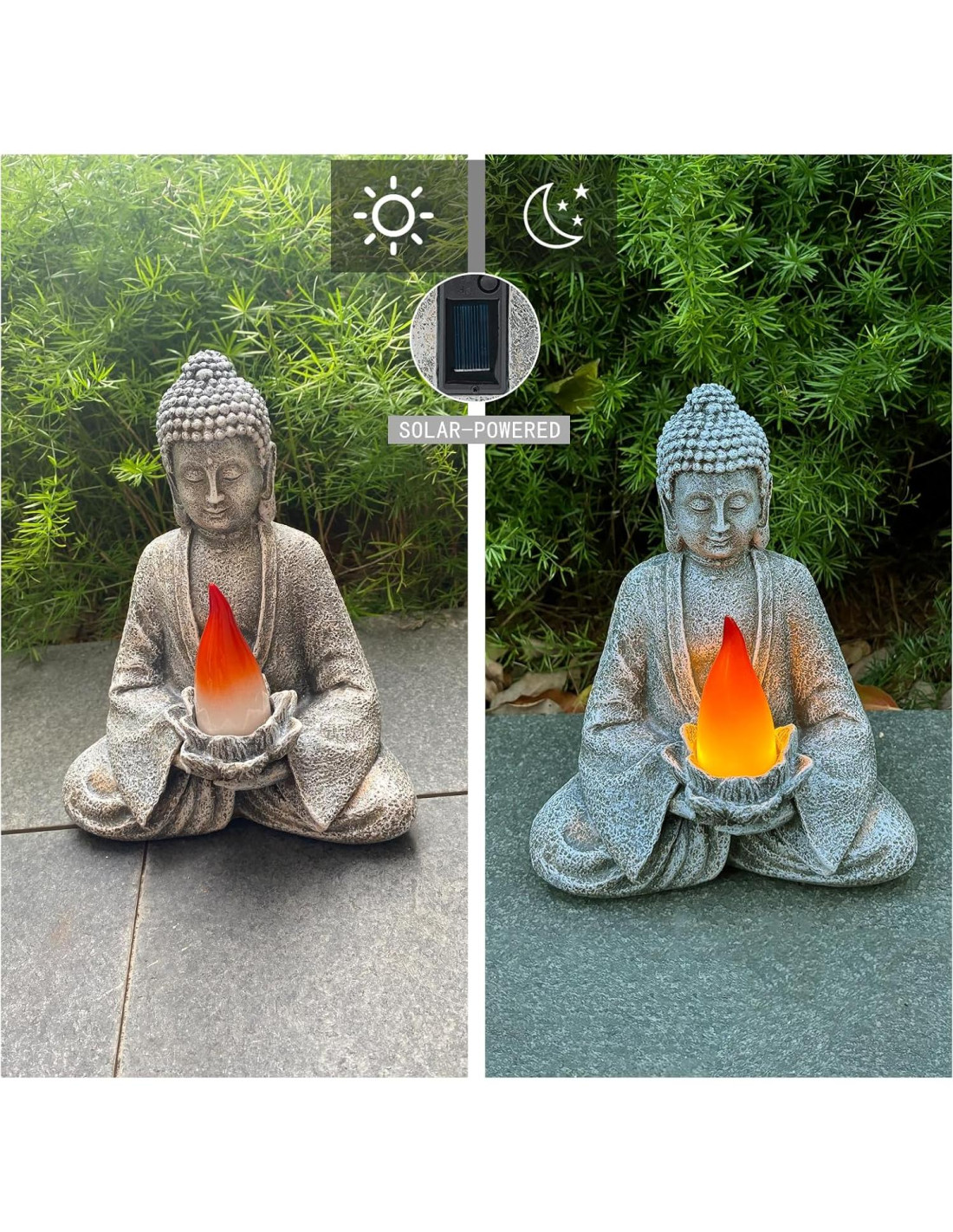- Decoración de Jardín de Alta Calidad. La decoración de jardín solar de la estatua de Buda está hecha de resina resistente y duradera a prueba de clima, pintada a mano y recubierta con protección UV para mantener su aspecto original incluso en entornos difíciles. Disfruta de la belleza de estas esculturas y estatuas de Buda radiante durante todo el año.