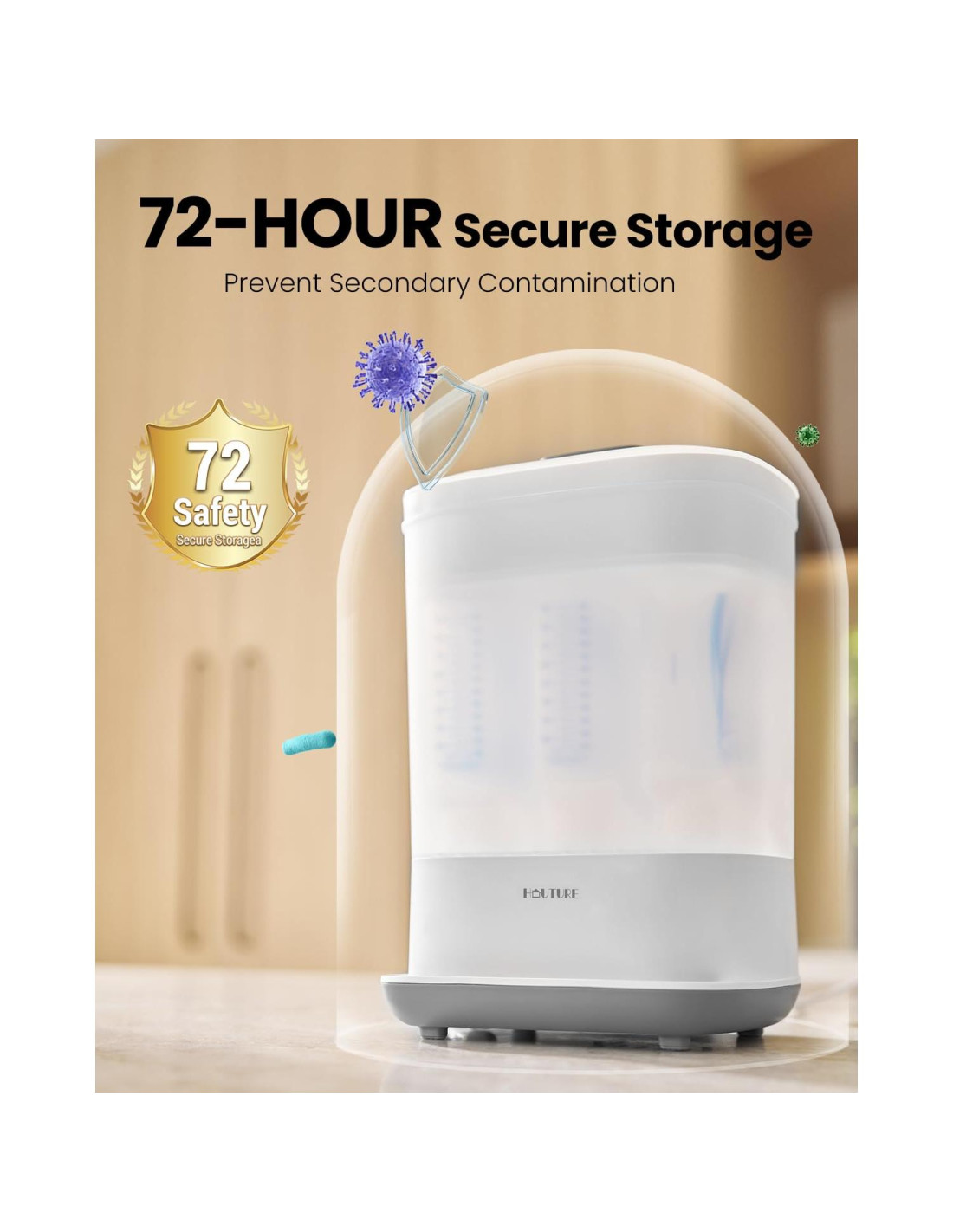 - Función de almacenamiento innovadora: Nuestra función de almacenamiento innovadora mantiene un ambiente libre de gérmenes durante 3 días completos (48 horas más que los esterilizadores estándar de 24 horas), asegurando que los biberones se mantengan estériles incluso durante las alimentaciones nocturnas. Disfruta de una tranquilidad y libertad prolongadas con esta preservación líder en la industria.