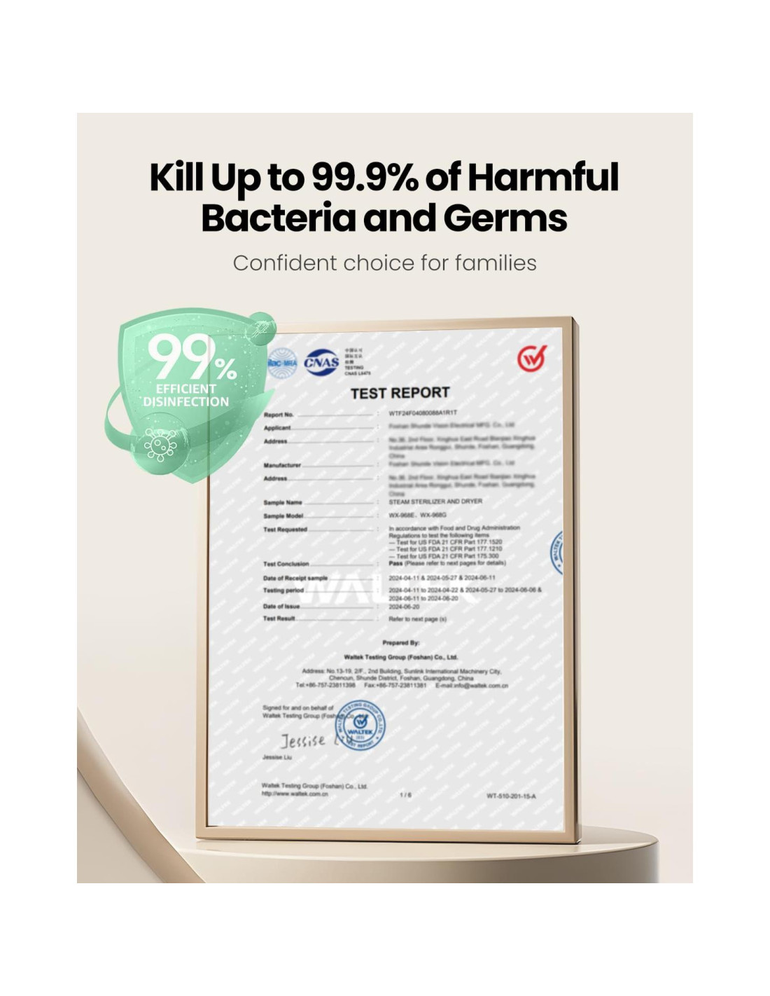 - 99.99% Eficacia de Esterilización: El esterilizador y secador de biberones HAUTURE ofrece una eficacia de esterilización del 99.99% utilizando vapor a 100C. Asegura un entorno de alimentación seguro e higiénico para recién nacidos.