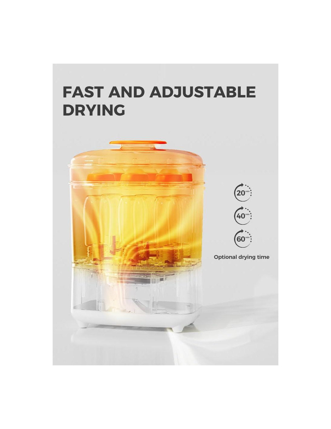 Proporciona una capa adicional de protección para salvaguardar la salud de su bebé. Basado en la cantidad de artículos que necesita secar, proporciona un secado flexible y eficiente para cada necesidad. Filtra efectivamente el 99.7% del polvo a nivel micrón, pelusa flotante y grandes partículas suspendidas. Si no hay desincrustante, puede usar vinagre blanco o un desincrustante que contenga ácido cítrico. Elija el modo de trabajo adecuado. Después de trabajar, limpie la placa de calentamiento para eliminar el exceso de agua y suciedad.